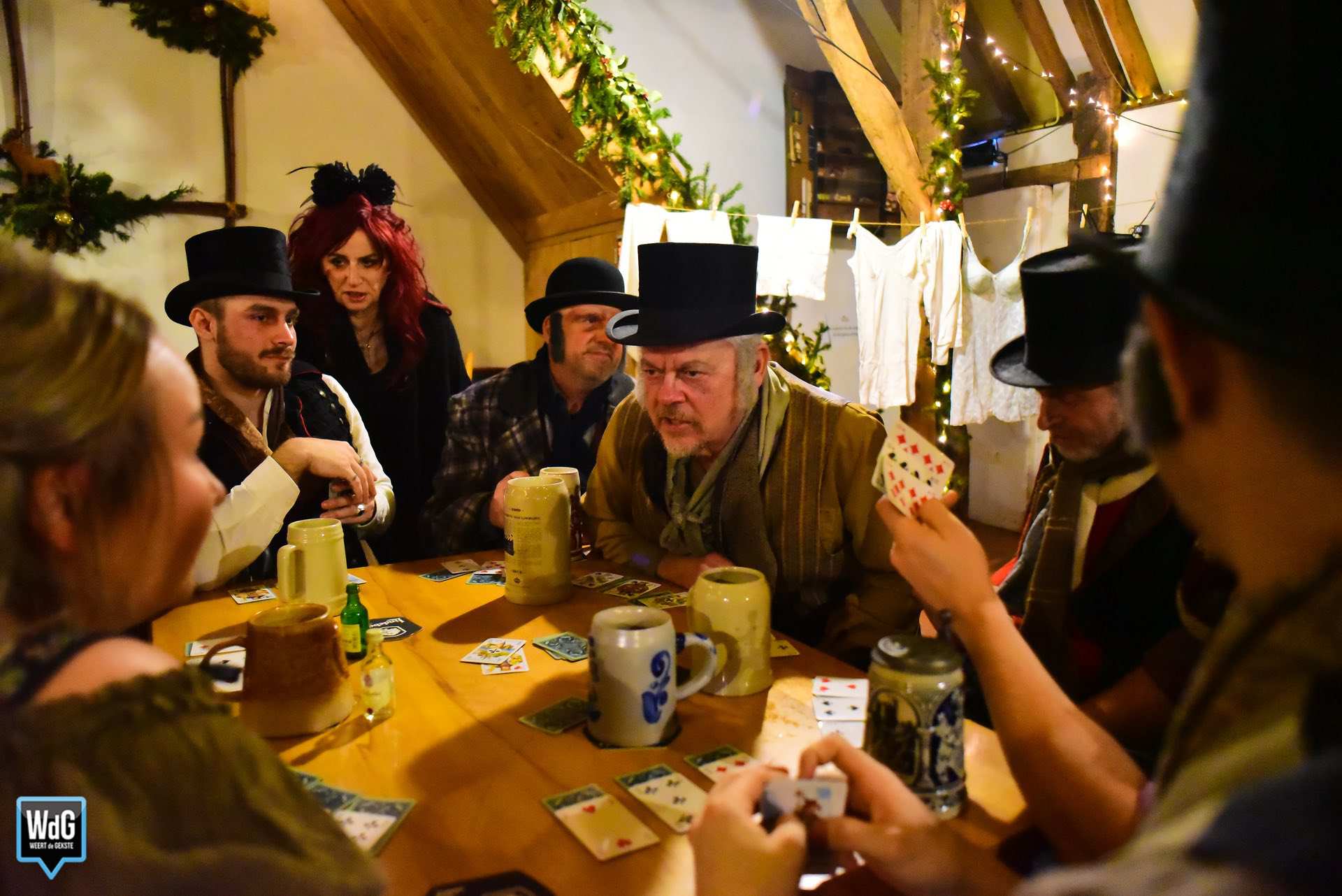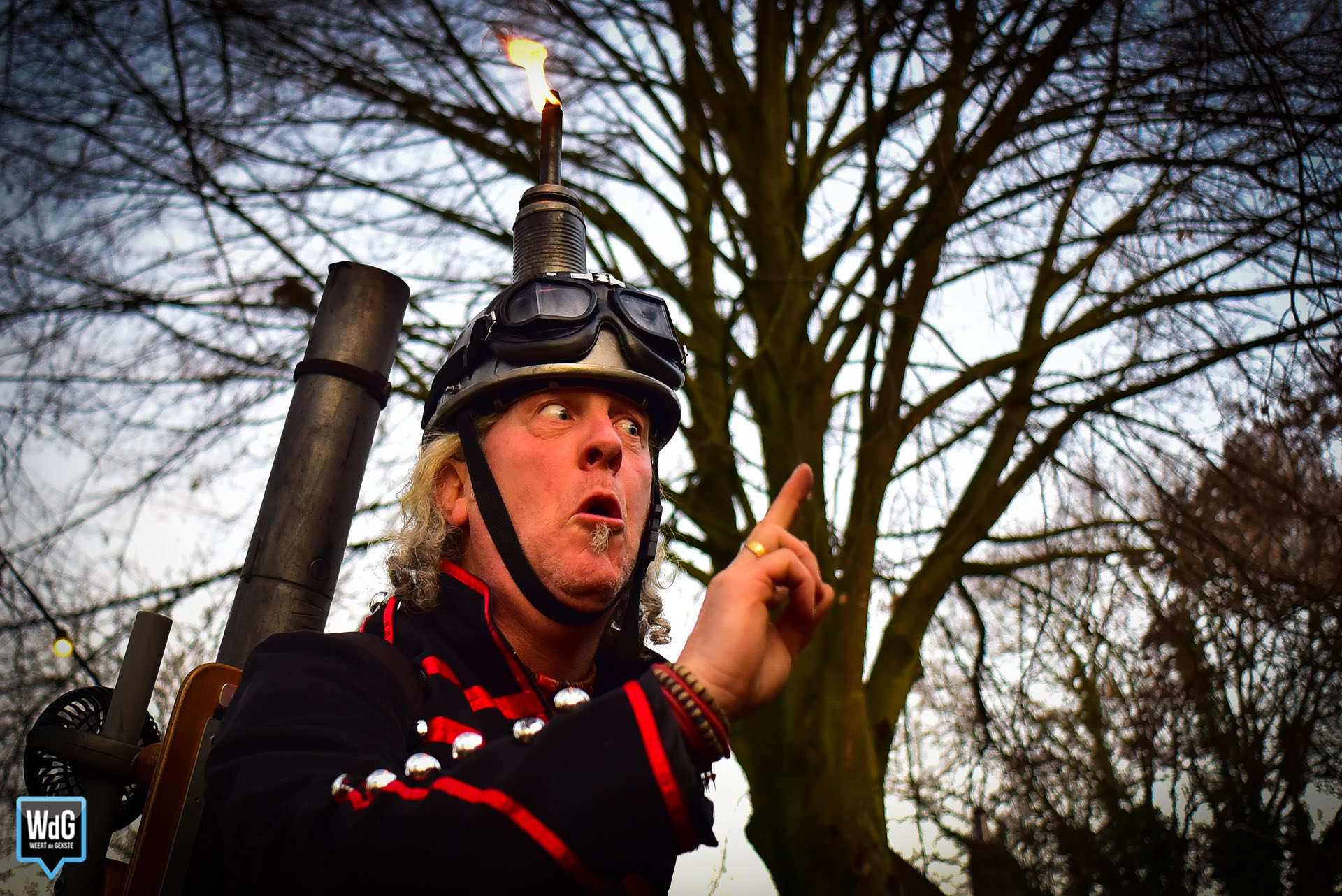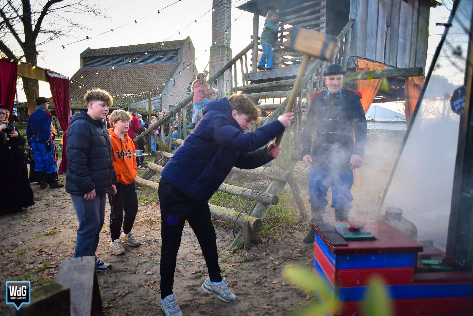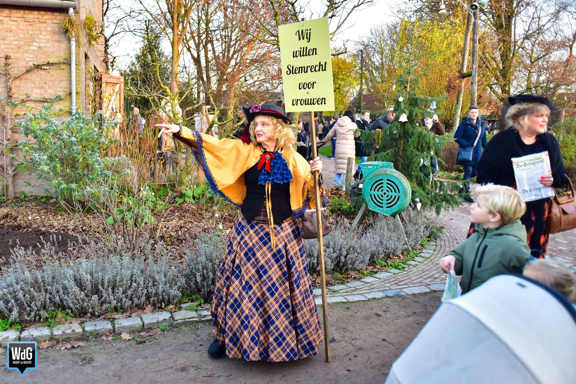 Er was van alles te beleven: de tientallen figuranten ‘vertelden’ allemaal hun eigen kleine verhaaltjes. De dronkaard zwalkte door de straatjes van het openluchtmuseum en in de boevenwagen zat een aantal straatschoffies die zich weer eens misdragen hadden.