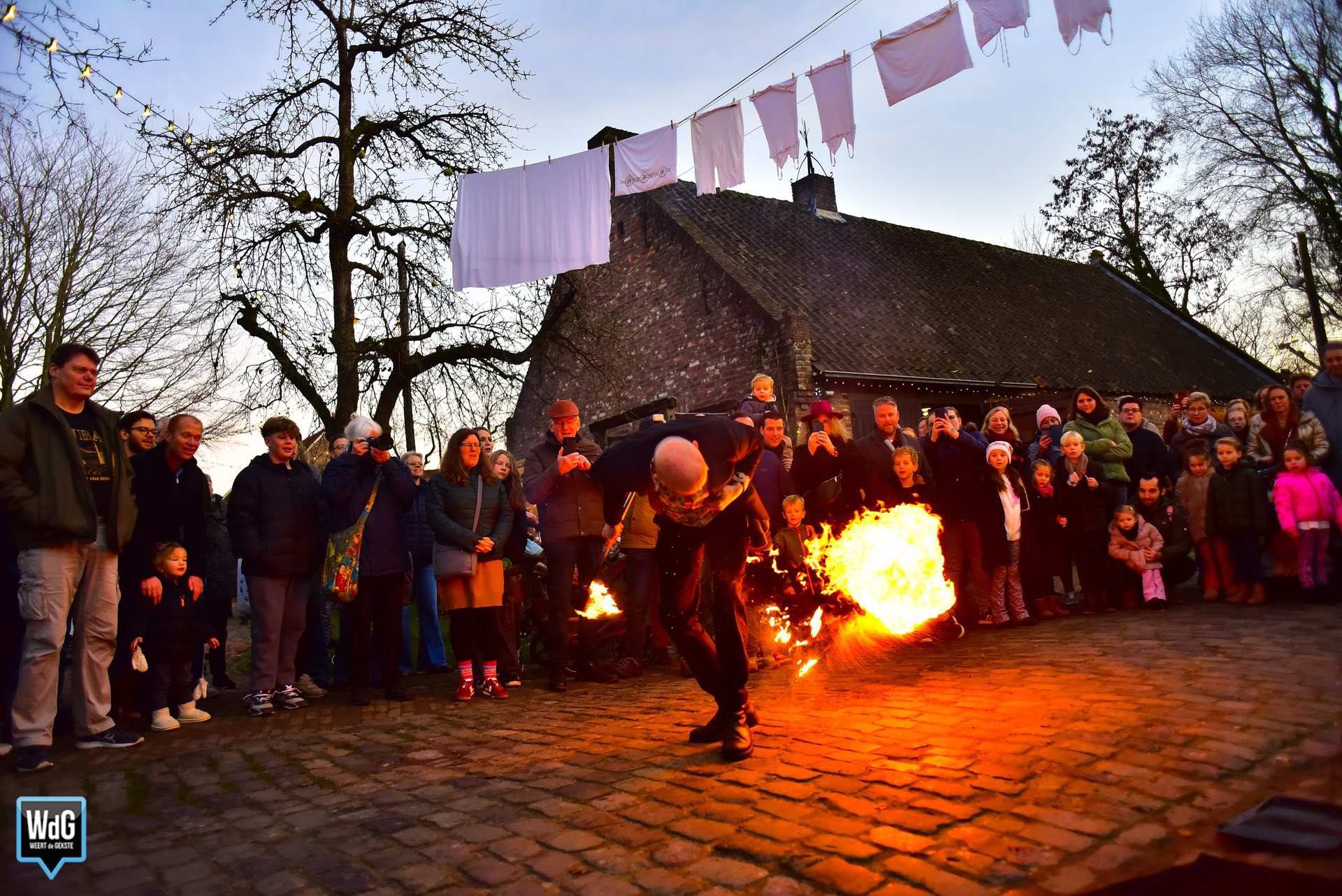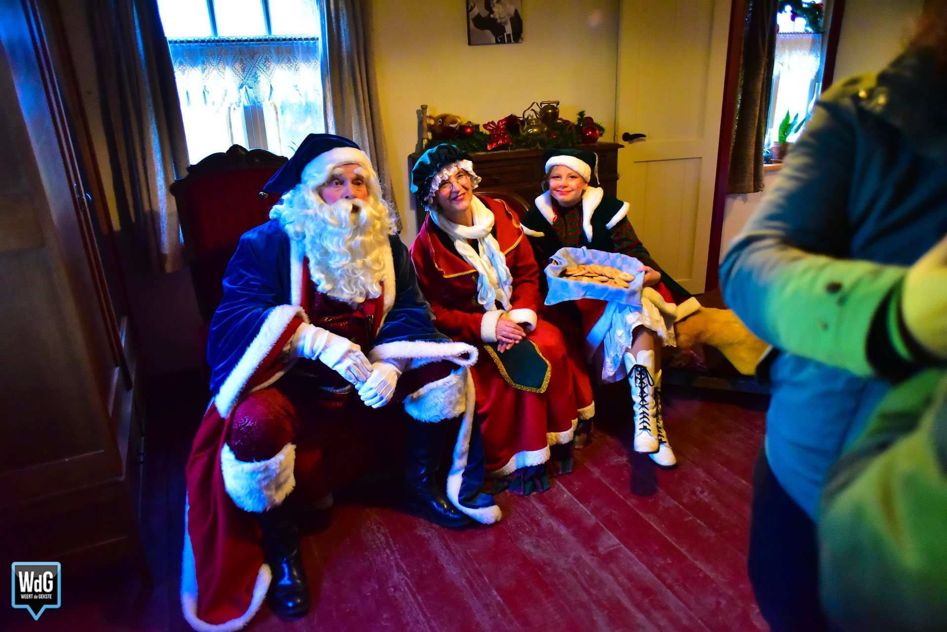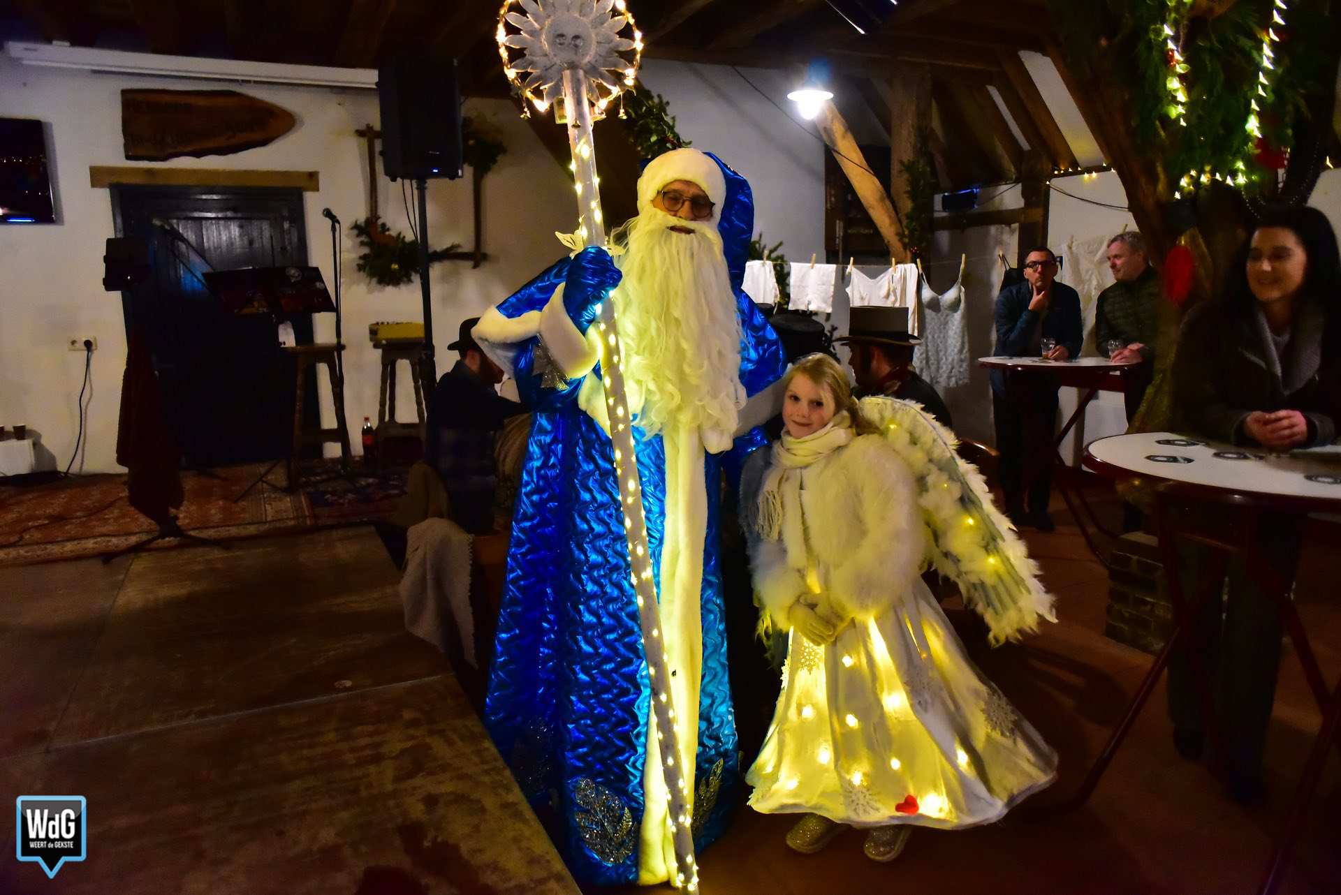 De Kerstman en zijn vrouw namen de tijd om samen met de elfjes op de foto te gaan en de vuurspuwer liet op gepaste afstand van het publiek zijn vlammende kunstjes zien.