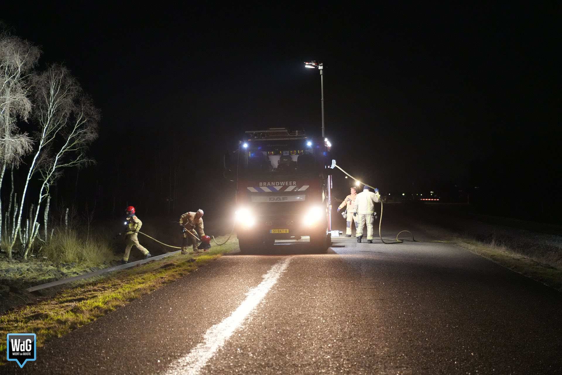 Ter plaatse bleek sprake van een bermbrand die zich door de aanwezige wind snel uitbreidde. Vanuit de meldkamer werd daarom opgeschaald naar ‘middel brand’. Onder meer een extra tankautospuit en een waterwagen werden ingezet om het vuur onder controle te krijgen.
