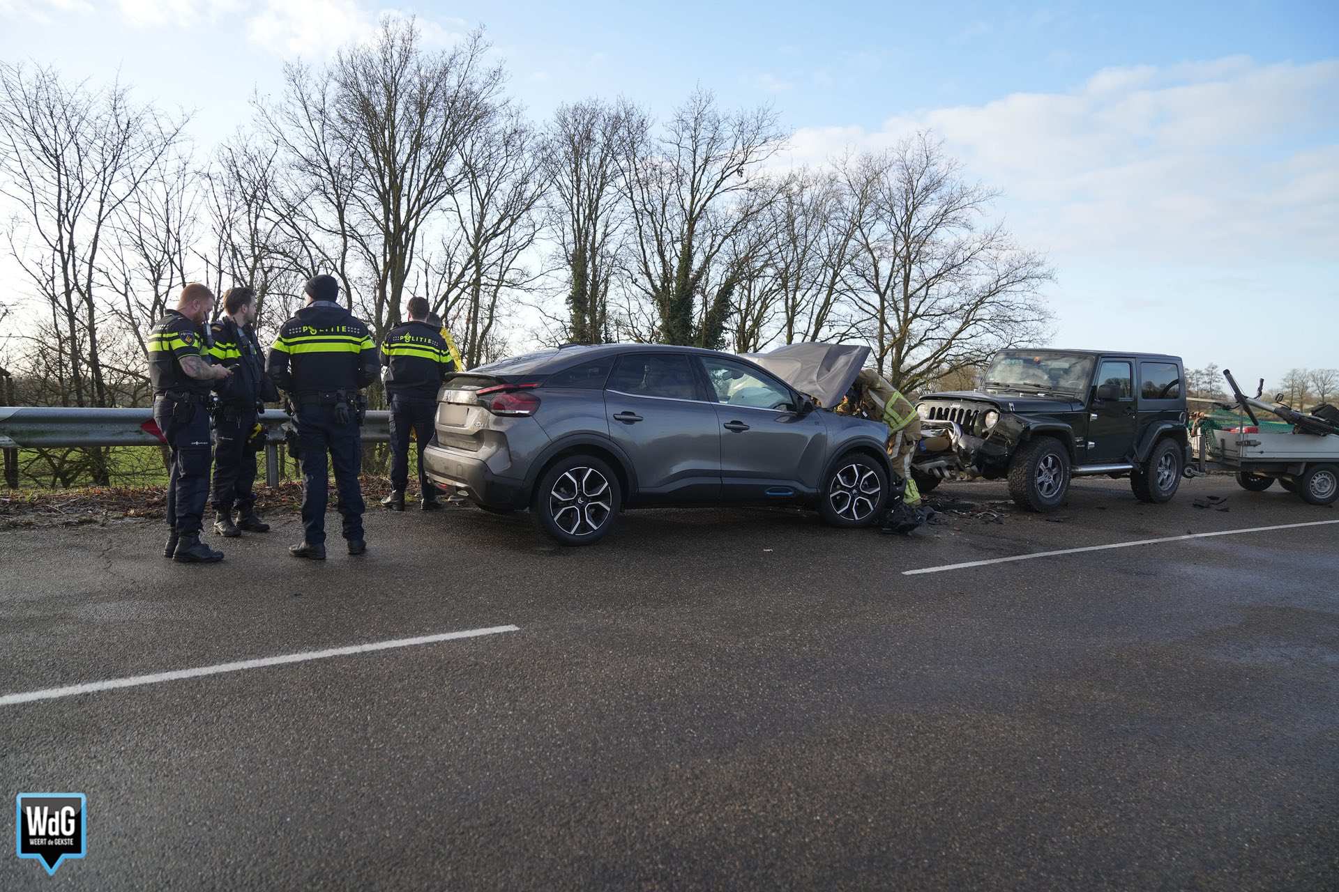 De politie ondersteunde bij de afhandeling van het ongeval. Een berger is opgeroepen om de beschadigde voertuigen af te slepen.