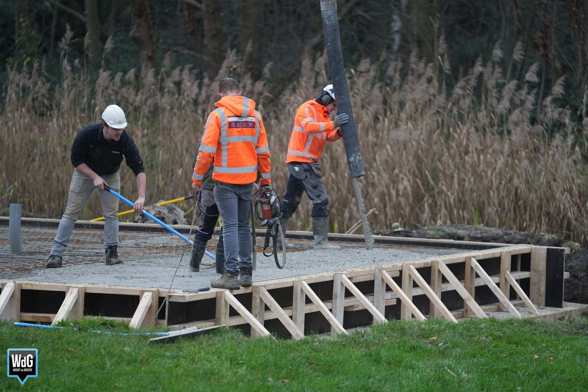 De herplaatsing van de historische hijskraan van Richier-Weitz is een stap dichterbij gekomen. Op dinsdag 17 december is de betonnen fundering gestort op het puntstuk nabij de spoorbrug aan de Suffolkweg-Zuid, langs de Zuid-Willemsvaart.