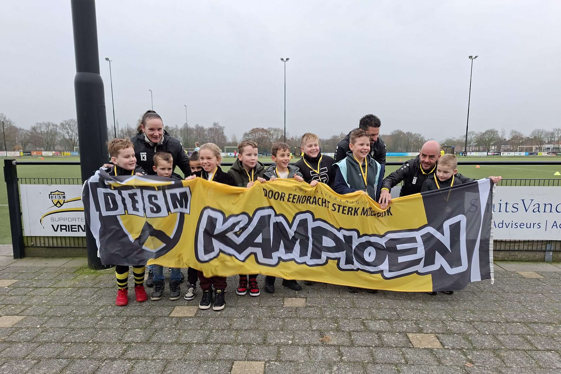 De voetballers van DESM JO9-2 zijn voor de tweede keer op rij ongeslagen kampioen geworden in hun klasse.