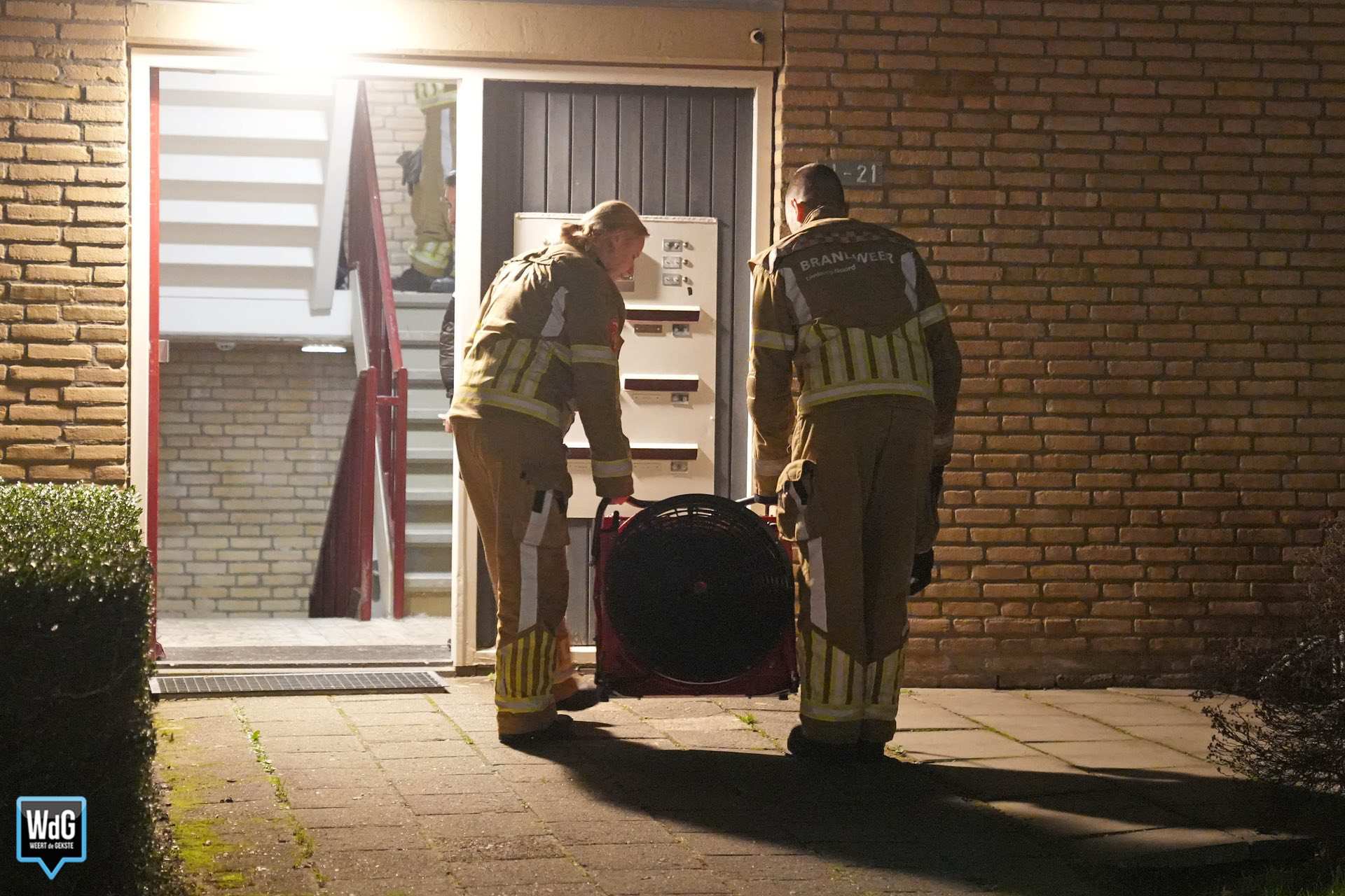 De brandweer zette ramen en deuren open en ventileerde de woningen één voor één. Ondertussen werd de situatie besproken met de politie en de persoon die de kooltjes had aangestoken, deze man was op bezoek in de betreffende woning. De man gaf aan zich erg schuldig te voelen over het incident.