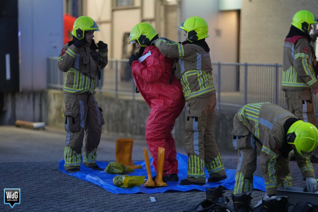 De brandweer doet onderzoek, voert metingen uit en bekijkt welke stappen nodig zijn om het incident zo snel en veilig mogelijk onder controle te krijgen.