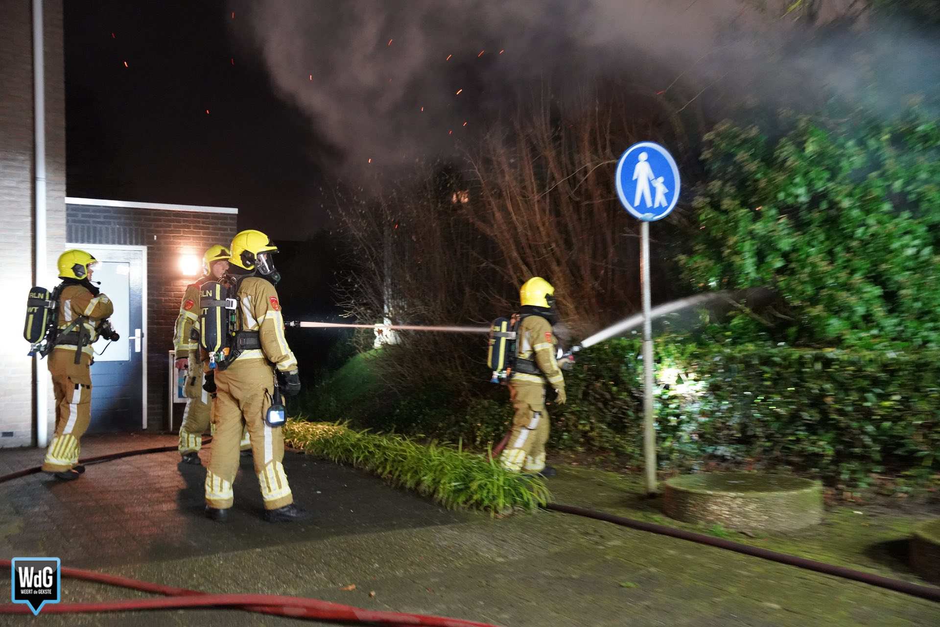 Bij aankomst bleek de pergola volledig in brand te staan. De brandweer heeft het vuur geblust, maar kon niet voorkomen dat de pergola volledig afbrandde. Ook een naastgelegen schutting raakte aangestraald door de hitte.