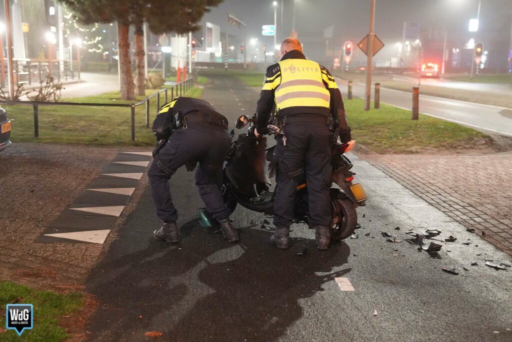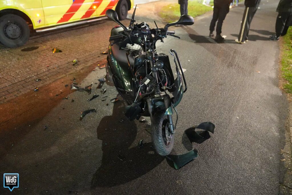 De politie ondersteunde bij de afhandeling van het ongeval, stalde de scooter en reinigde het wegdek. De auto is door een berger afgesleept.
