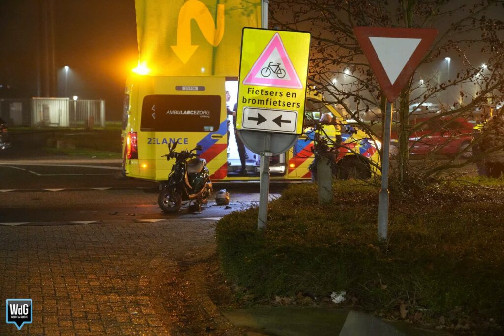 De auto, waarin meerdere jongemannen zaten, wilde het parkeerterrein van een leisurecentrum verlaten na een avondje bowlen. Toen de bestuurder de Randweg West op reed, werd een naderende scooter over het hoofd gezien. De bestuurder van de scooter kon niet meer op tijd remmen en botste tegen de passagierszijde van de auto. Door de aanrijding kwam de scooterrijder ten val en raakte hij gewond.