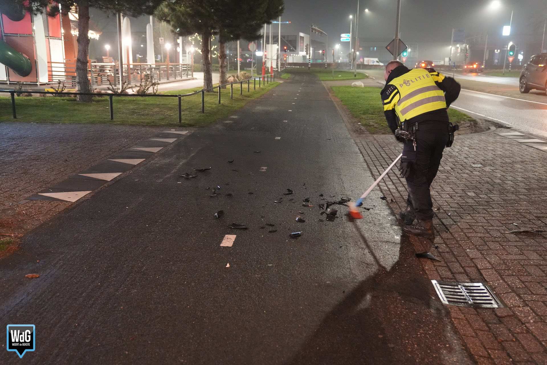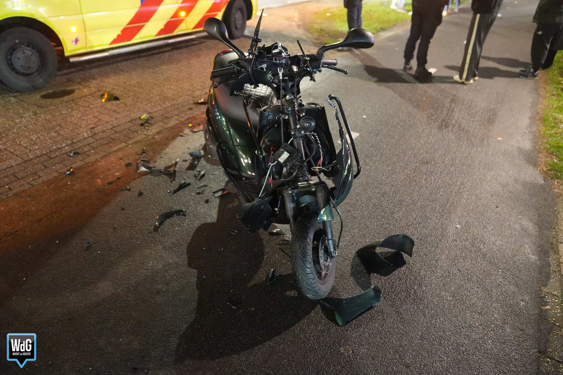 De politie ondersteunde bij de afhandeling van het ongeval, stalde de scooter en reinigde het wegdek. De auto is door een berger afgesleept.