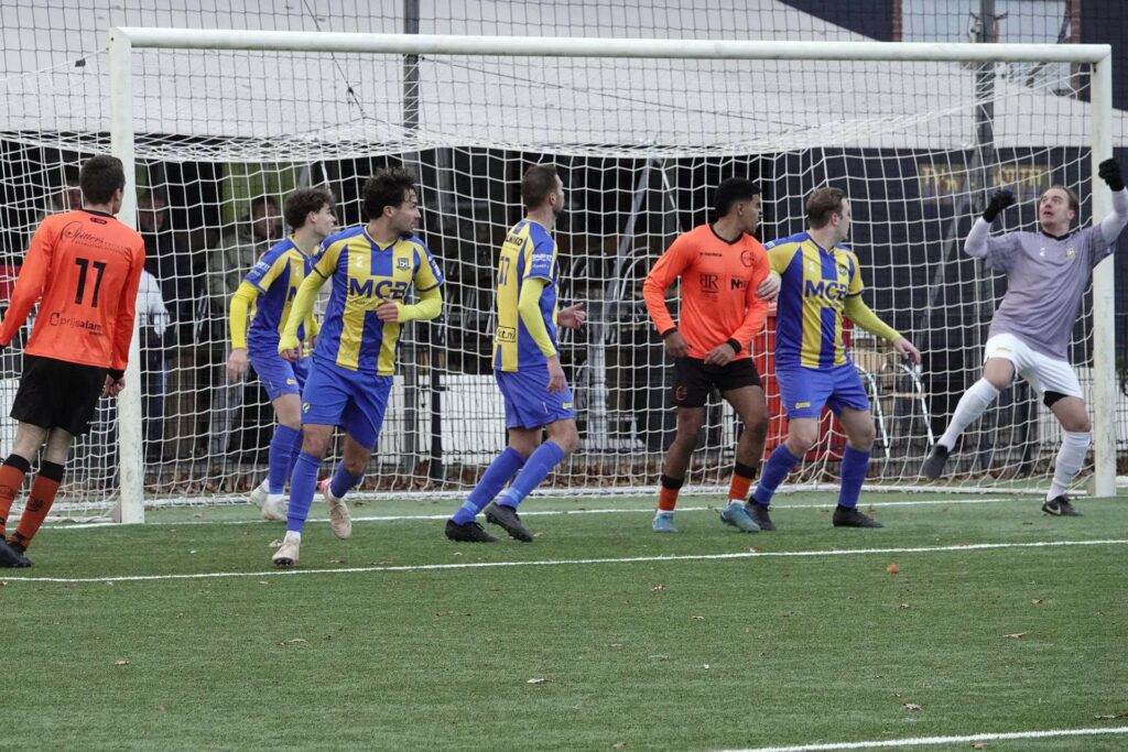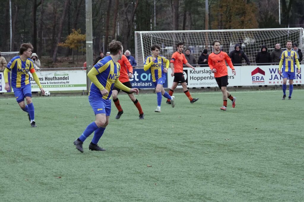 In de 34e minuut kreeg Valkenswaard-spits Sem van Ham de beste kans van de eerste helft. Zijn schot raakte de binnenkant van de paal, maar belandde vervolgens in de handen van Mike Betting.