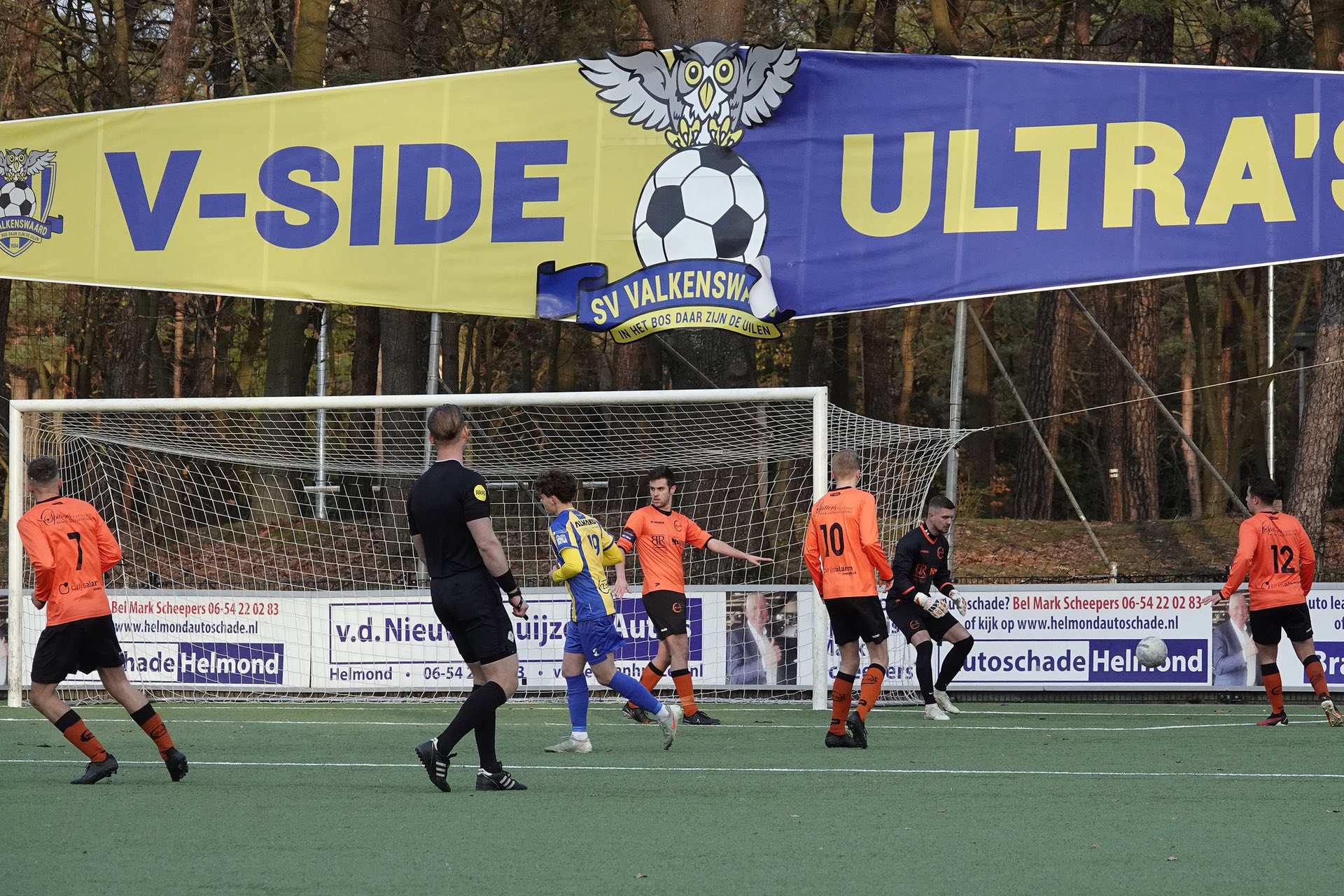 In de 34e minuut kreeg Valkenswaard-spits Sem van Ham de beste kans van de eerste helft. Zijn schot raakte de binnenkant van de paal, maar belandde vervolgens in de handen van Mike Betting.