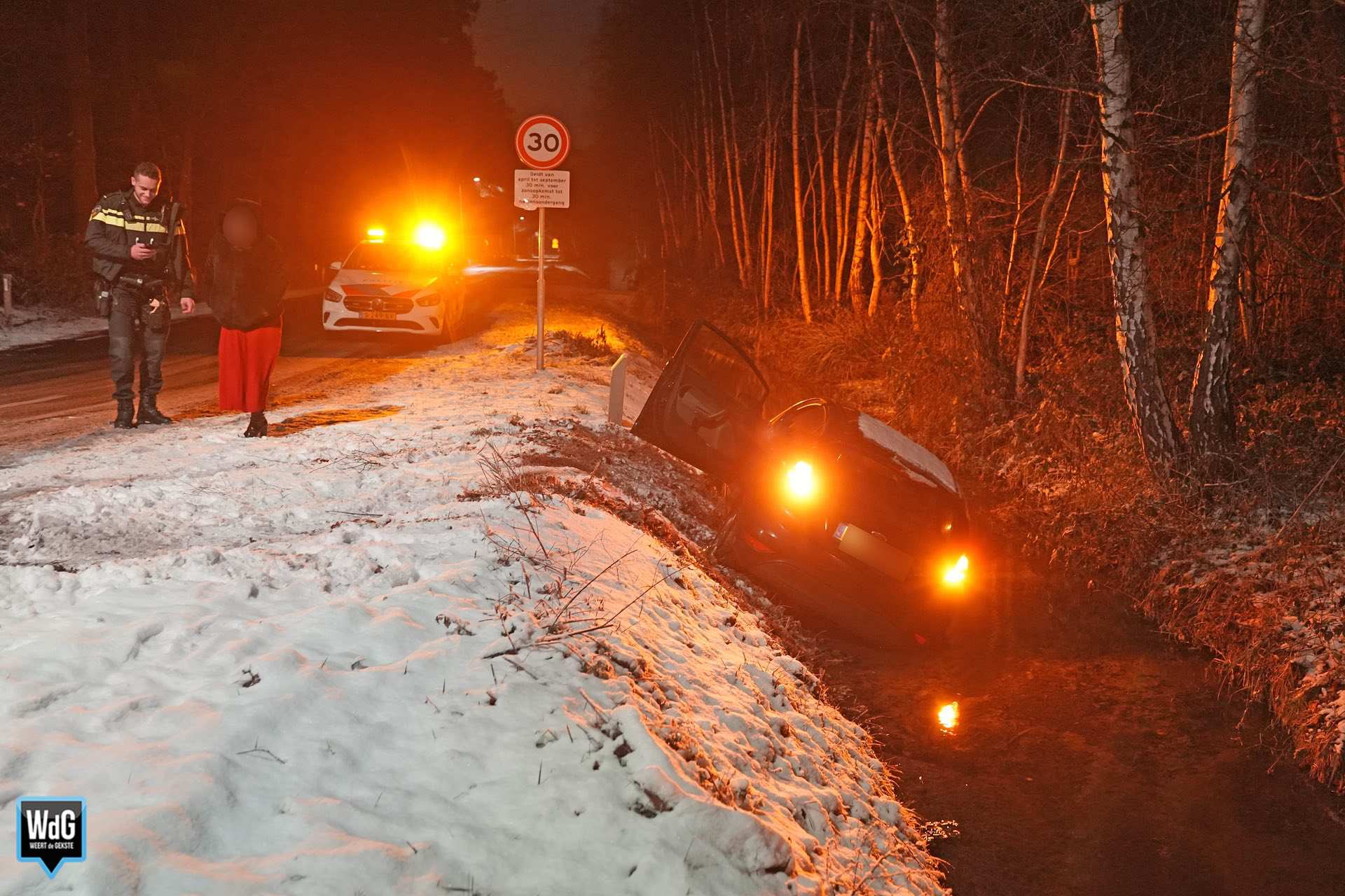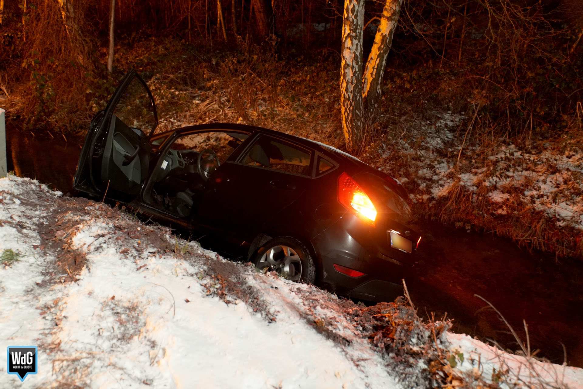 Voor de tweede keer vandaag heeft zich een ongeval voorgedaan op de Herenvennenweg. Ditmaal belandde een auto in de sloot, een stuk verderop.