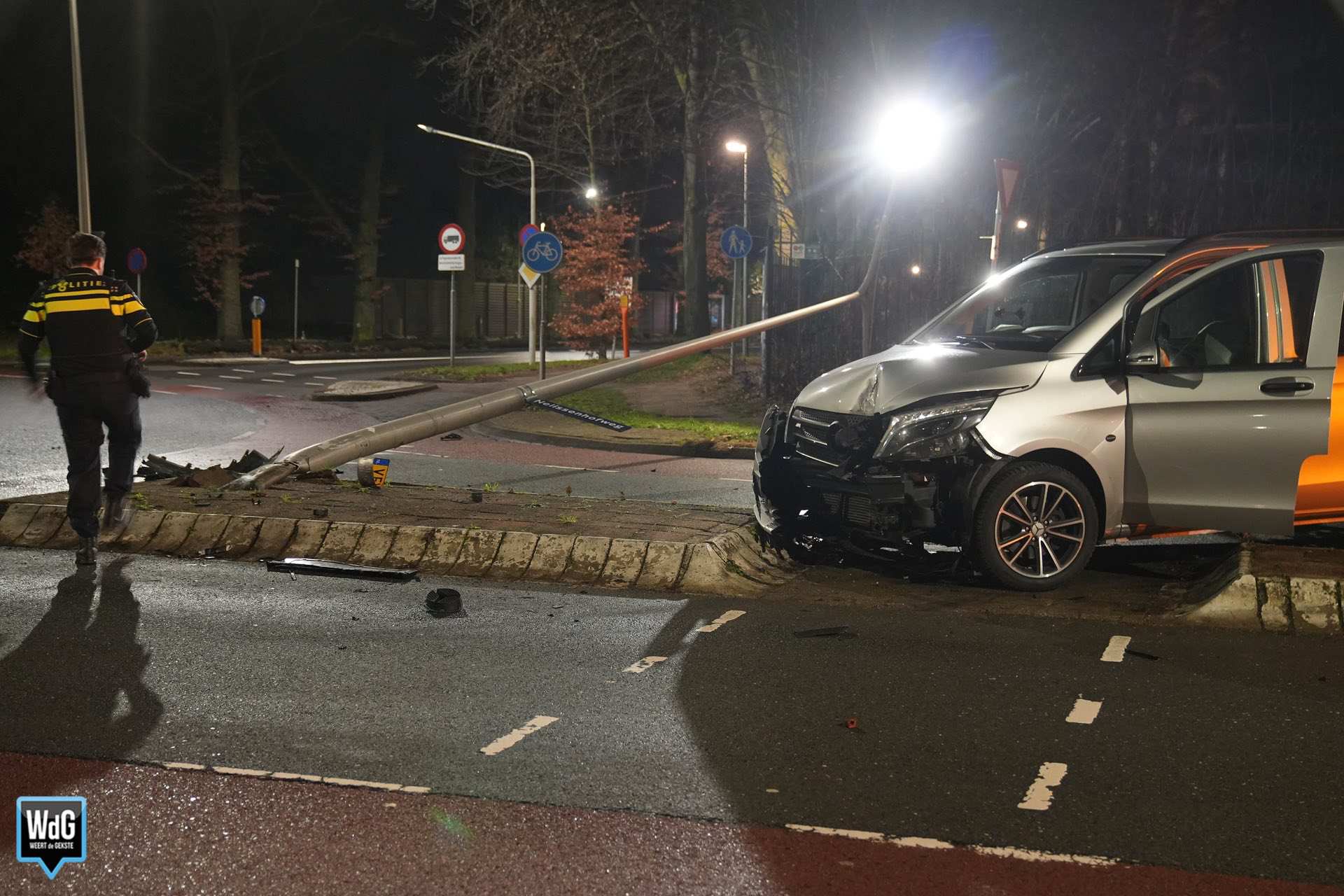 De politie hield de bestuurder aan en bracht hem over naar het politiebureau voor nader onderzoek, zoals een ademanalyse. Door de aanrijding lag de lantaarnpaal dwars over de Nelissenhofweg. Het busje liep aanzienlijke schade op en een berger heeft het voertuig afgesleept. De politie stelde de gemeente Weert op de hoogte, zodat de lantaarnpaal kon worden verwijderd.