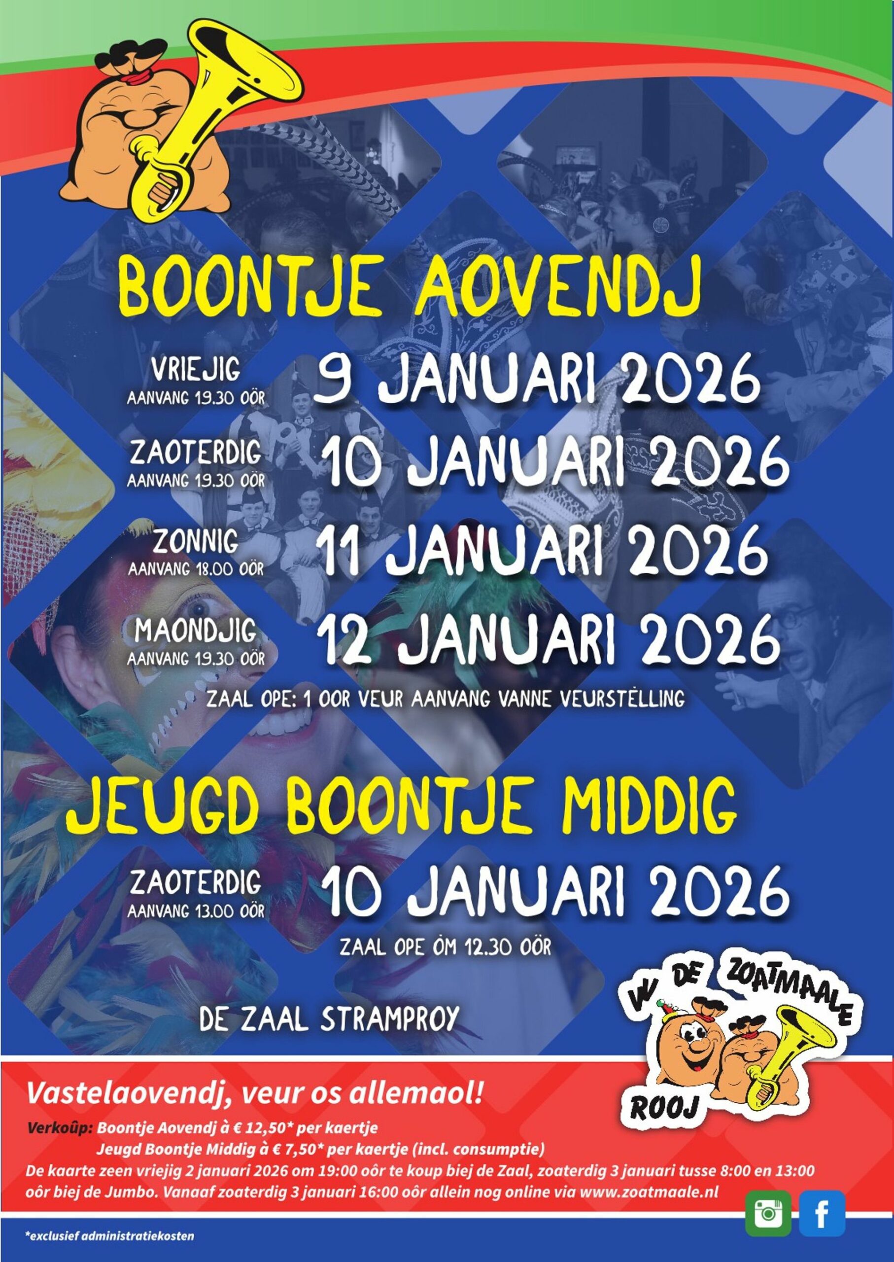 - Vanaf zaterdag 3 januari vanaf 08.00 uur bij de Jumbo in Stramproy en vanaf 16.00 uur uitsluitend nog online via de website van V.V. De Zoatmaale.