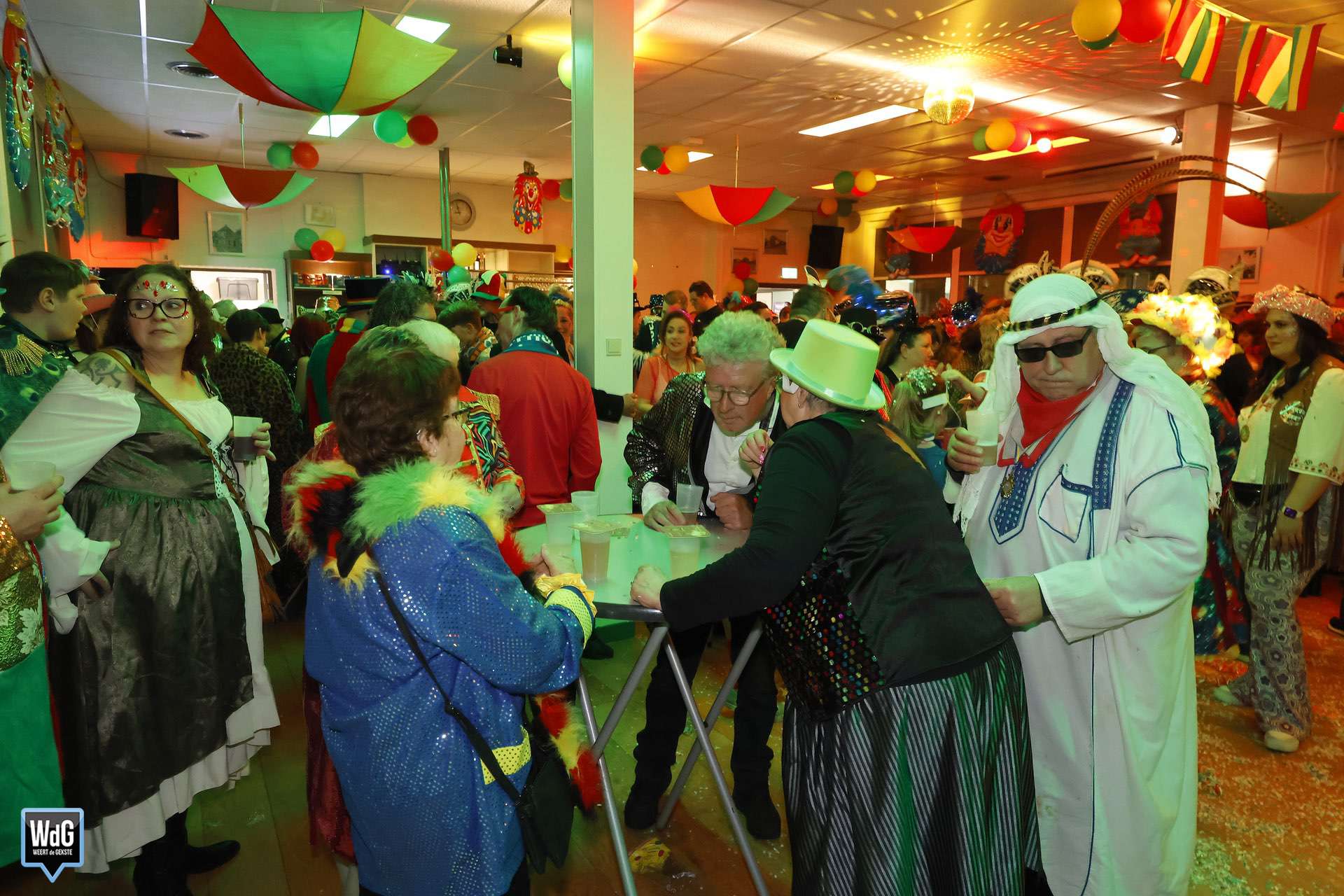 Vanaf 19.30 uur stroomde het buurthuis vol met carnavalsvierders. Nadat jeugdprins Kian I en jeugdprinses Didi I de nodige handjes hadden geschud, konden de voetjes van de vloer. Beppie Kraft, Deindanger, Lèste Dre-j en Mark Gruijthuijsen wisten het publiek tot in de late uurtjes volop te laten genieten.