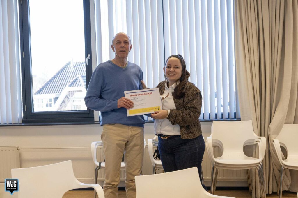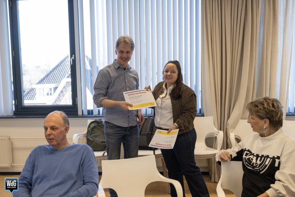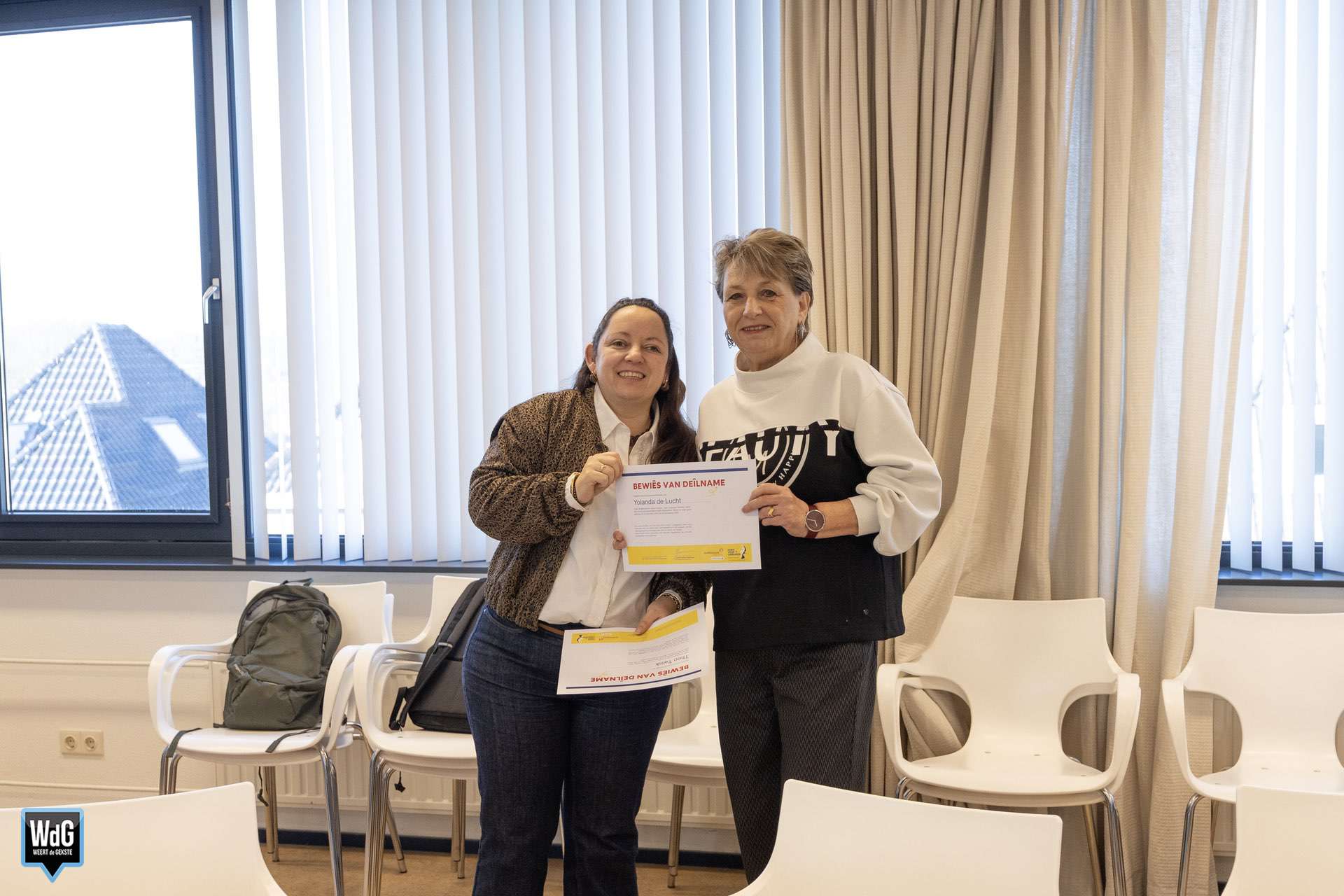 Tien zaterdagmorgens lang hebben de deelnemers zich verdiept in de taal en cultuur van het Wieërterland, onder begeleiding van drie enthousiaste vrijwillige docenten. De lessen waren interactief, met veel aandacht voor praktische spreekvaardigheid, luisteroefeningen, culturele context en regionale verschillen binnen het Limburgs. De leergang werd eerder ontwikkeld binnen ’t Hoes veur ’t Limburgs en speciaal voor deze editie inhoudelijk hertaald naar het Weerts door meerdere betrokken taalkenners, die bij de uitreiking eveneens aanwezig waren.