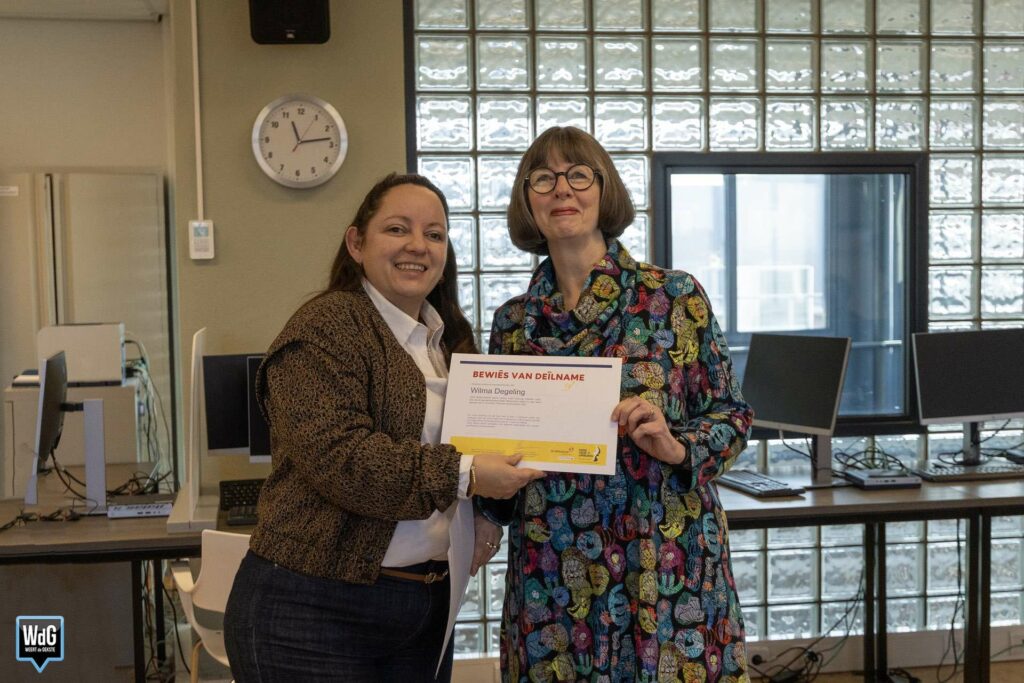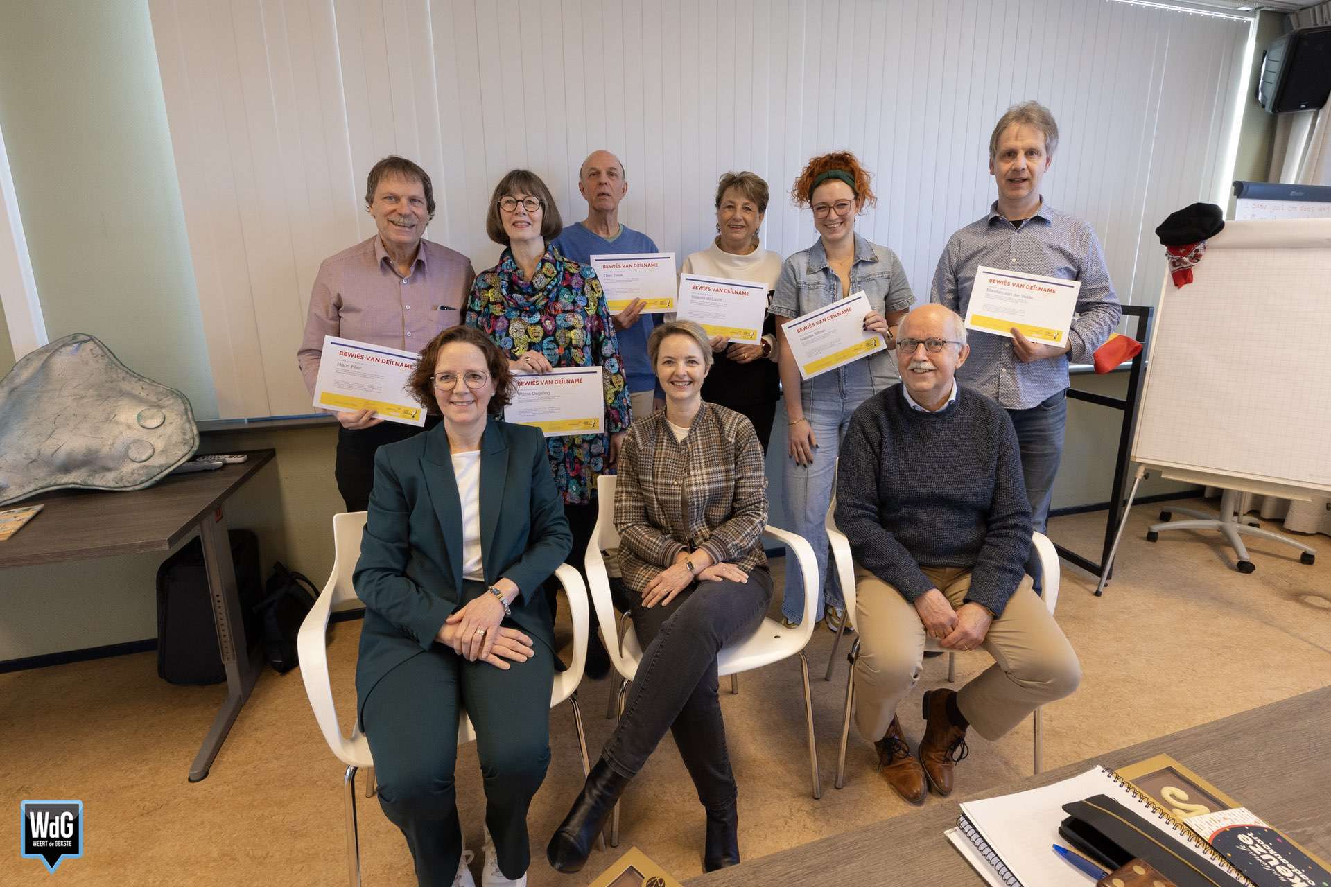 Op zaterdag 24 januari vond in Bibliocenter Weert een bijzonder moment plaats: de allereerste groep cursisten rondde de piloteditie af van de nieuwe tienweekse cursus ‘Leef Limburgs: Wieërterland – Weerts als tweede taal’, die werd verzorgd in samenwerking met ’t Hoes veur ’t Limburgs. Tijdens een korte feestelijke bijeenkomst om 11.00 uur bij Bibliocenter Weert ontvingen de zes deelnemers hun certificaat uit handen van wethouder Suzanne Winters.