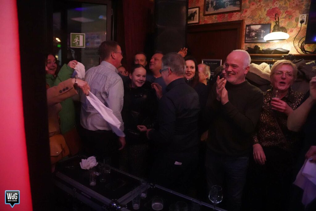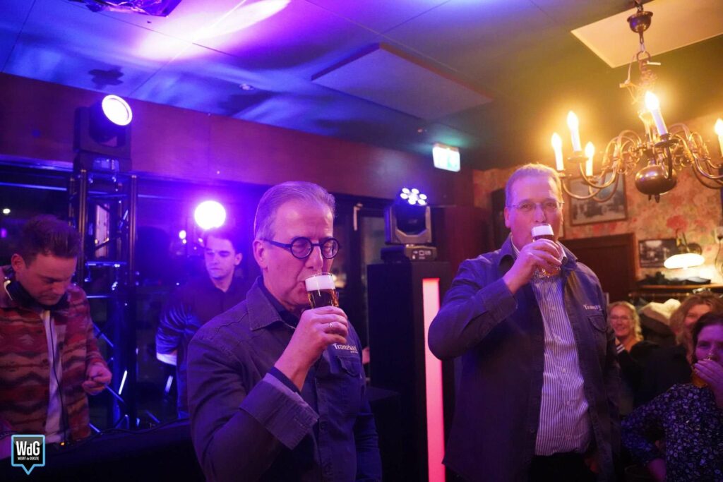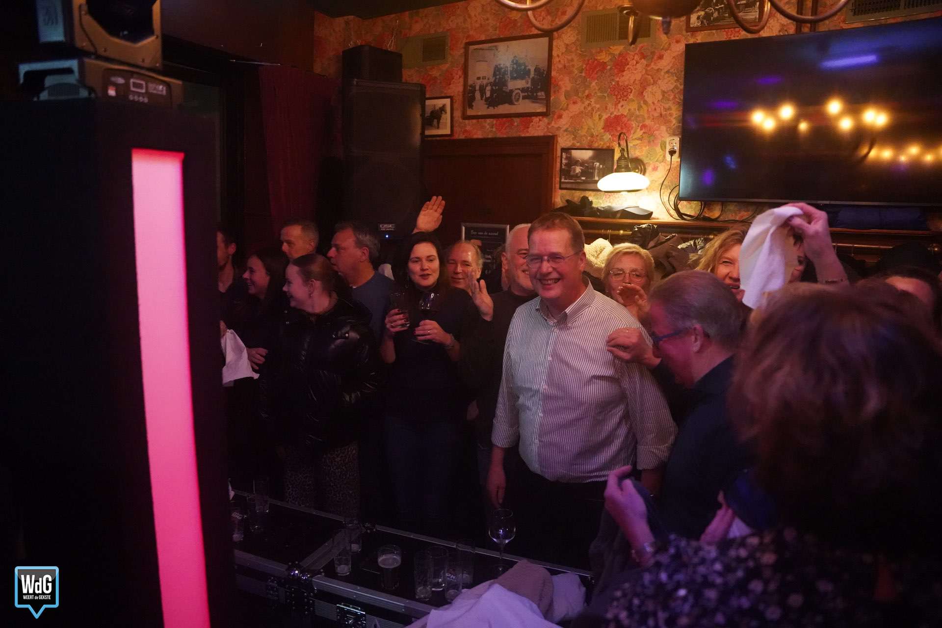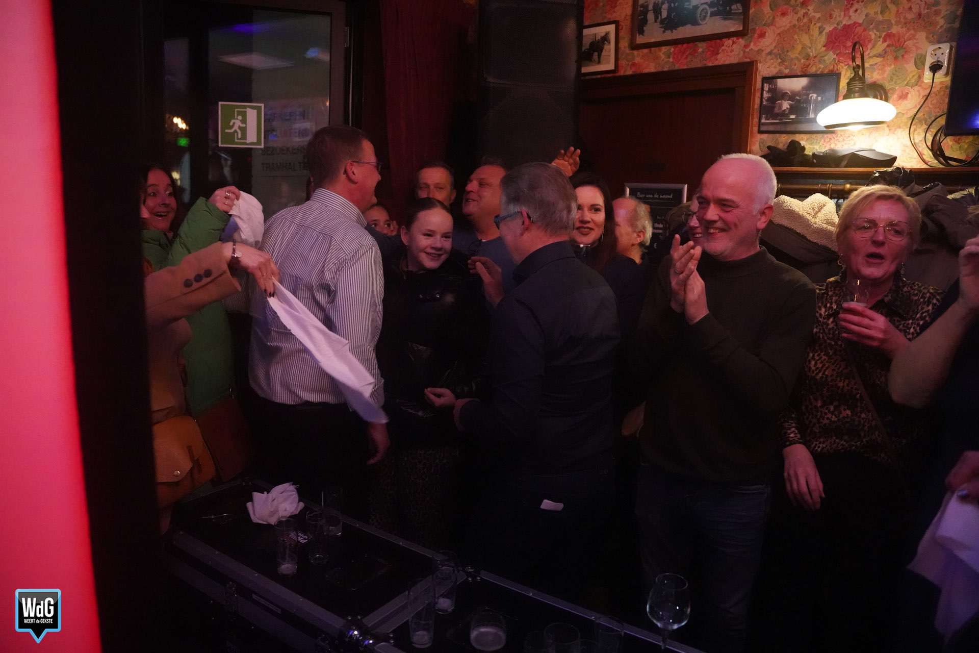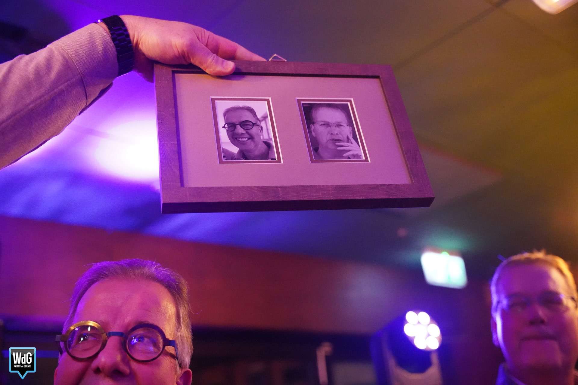 De voormalige uitbaters werden met diverse ludieke cadeaus verrast en trokken tot slot symbolisch hun werkkleding uit. De tissues gingen de lucht in en na vele muzikale ’toedeloetjes’ werden Marcel en Peter samen met hun partners de deur ‘uitgewerkt’. Om vervolgens uiteraard terug te keren voor een onvergetelijke feestavond!