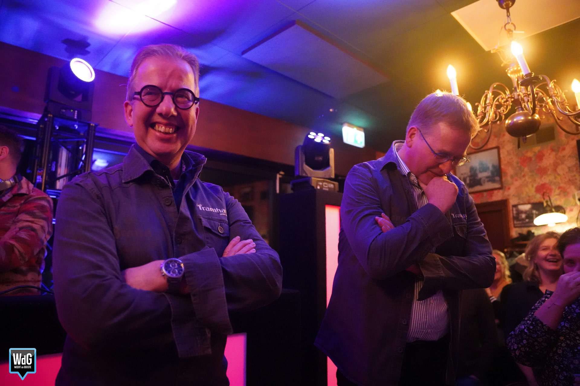 In een afgeladen Tram sprak Frans Snels de broers op ludieke wijze toe. Peter en Marcel staken bijna 12 jaar lang hun ziel en zaligheid in Café Tramhalt, dat zij volgens hem hebben gemaakt tot een café waarin iedereen zich thuisvoelt. “Kijk alleen al naar al die mensen die hier zijn, dat is het bewijs van wat jullie hebben neergezet”, aldus Frans Snels, wat door het publiek bevestigd werd met een luid applaus.