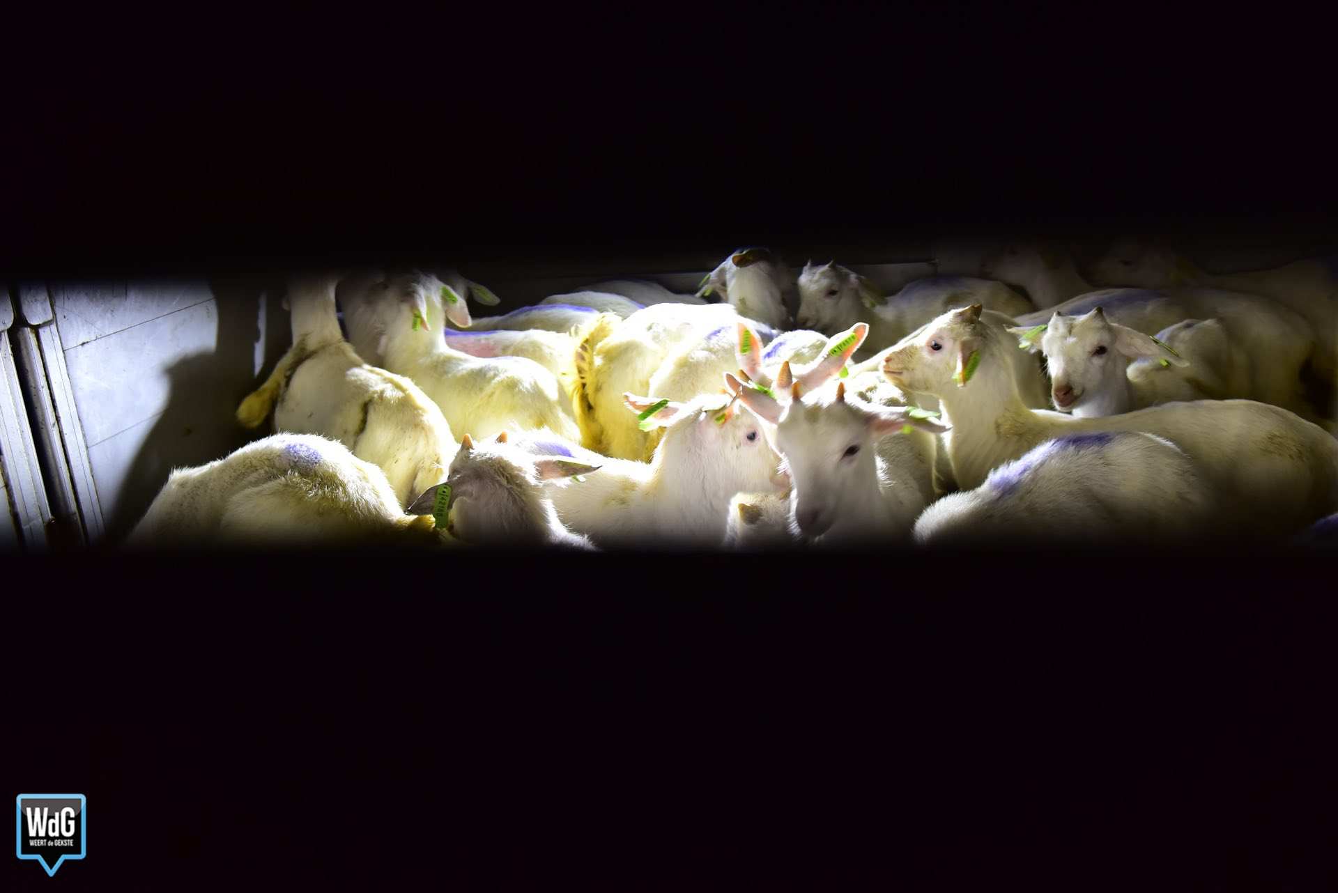 Arme geitjes. Dan wordt je al vanuit je omgeving in een krappe vrachtwagen gestouwd met allemaal soortgenoten en dan overkomt je ook nog dit onderweg. Je zou er vegetariër van worden.