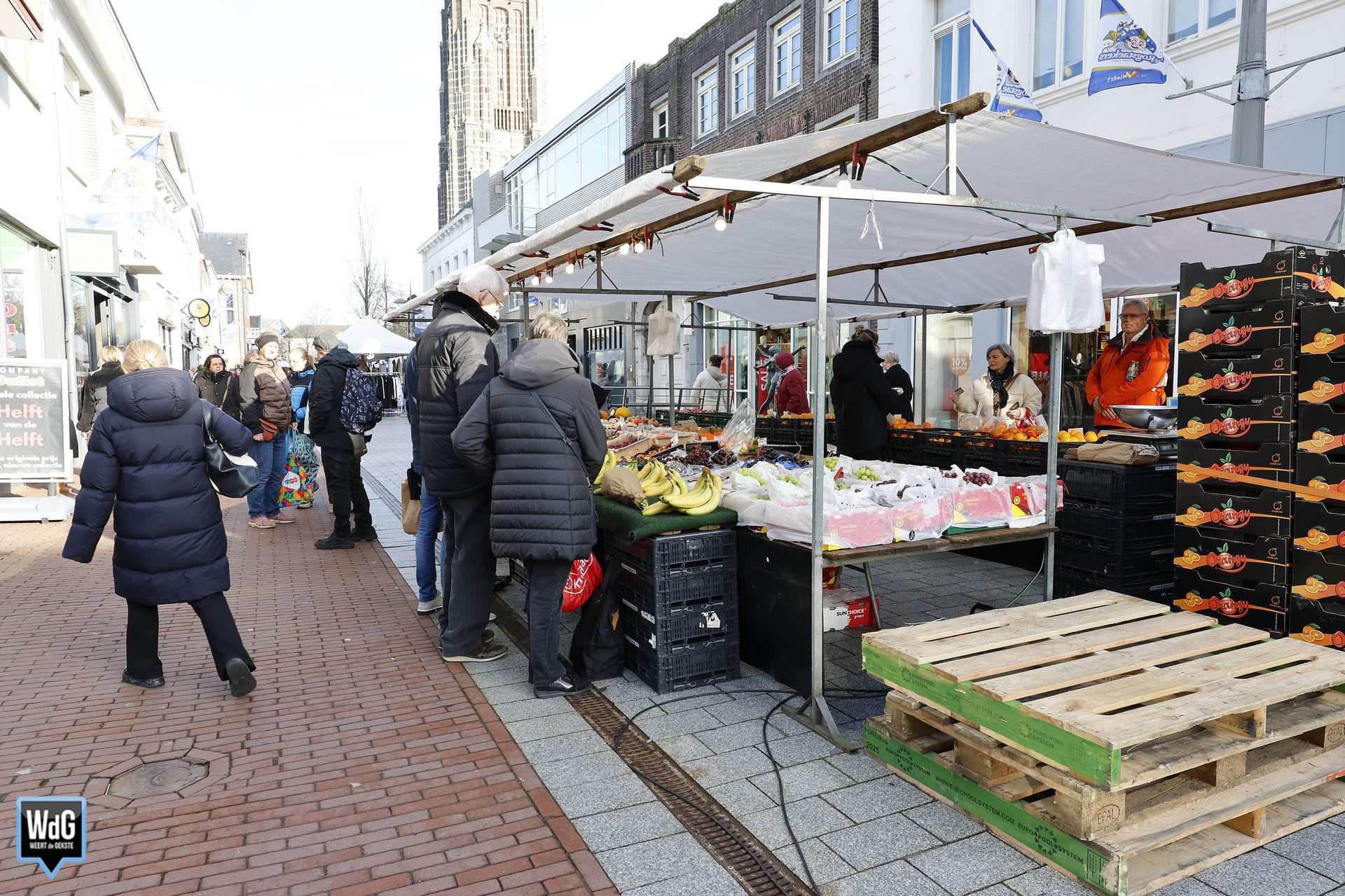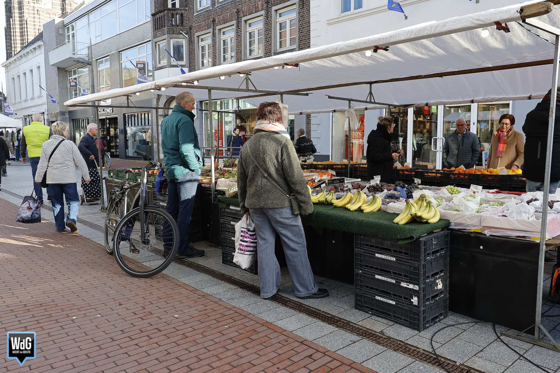 Tijdens de weekmarkt in Weert was het zaterdag duidelijk drukker dan een week eerder. Waar de binnenstad toen nog bedekt was met sneeuw, was daar dit weekend niets meer van te zien. Met het zonnige en aangenamere weer trokken meer bezoekers naar de markt en ook de terrassen.