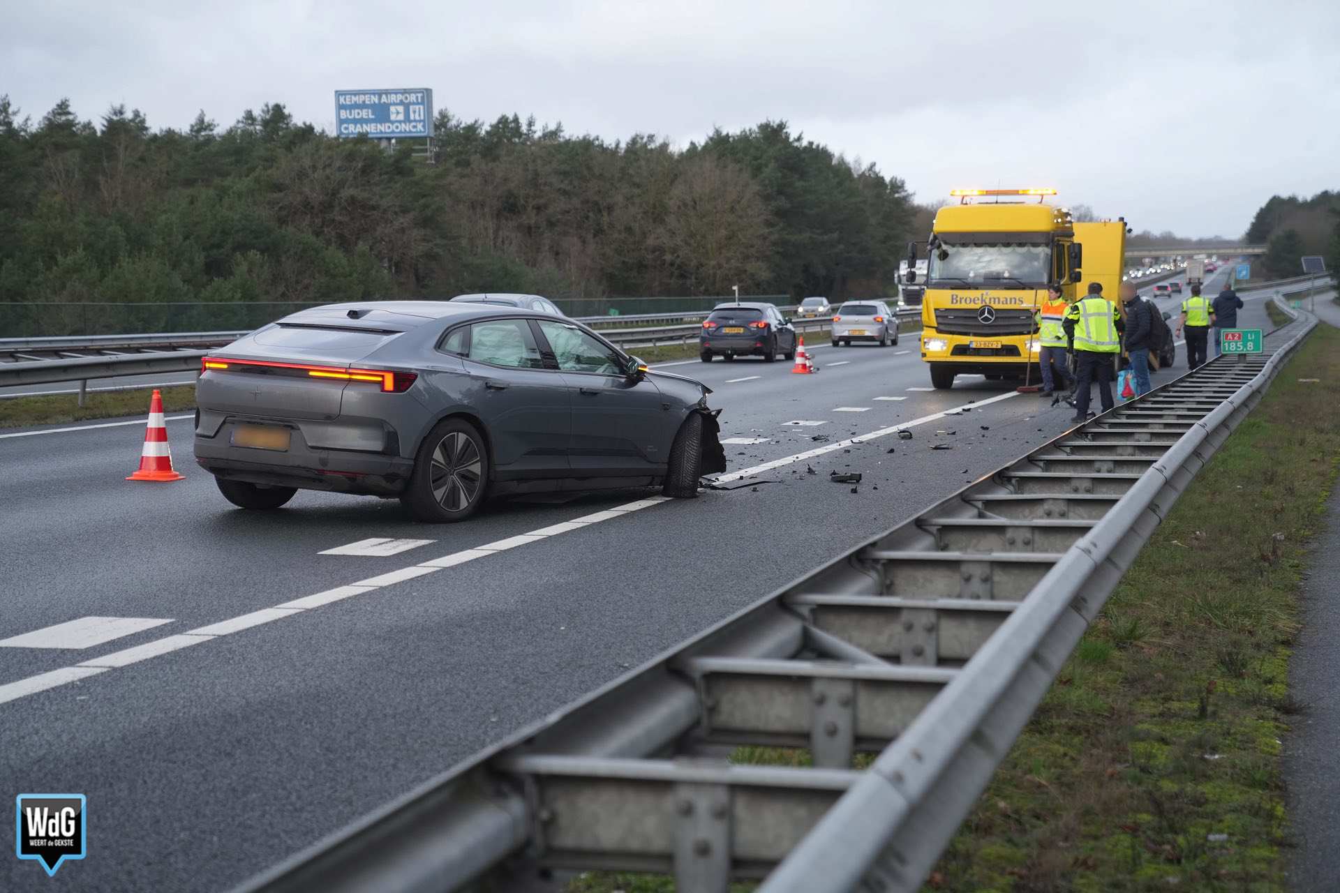 Het ongeval gebeurde in de rijrichting van Weert naar Eindhoven, net vóór de afrit Budel/Maarheeze. Door een nog onbekende oorzaak botsten de twee voertuigen op elkaar. Voor zover bekend raakte niemand gewond.