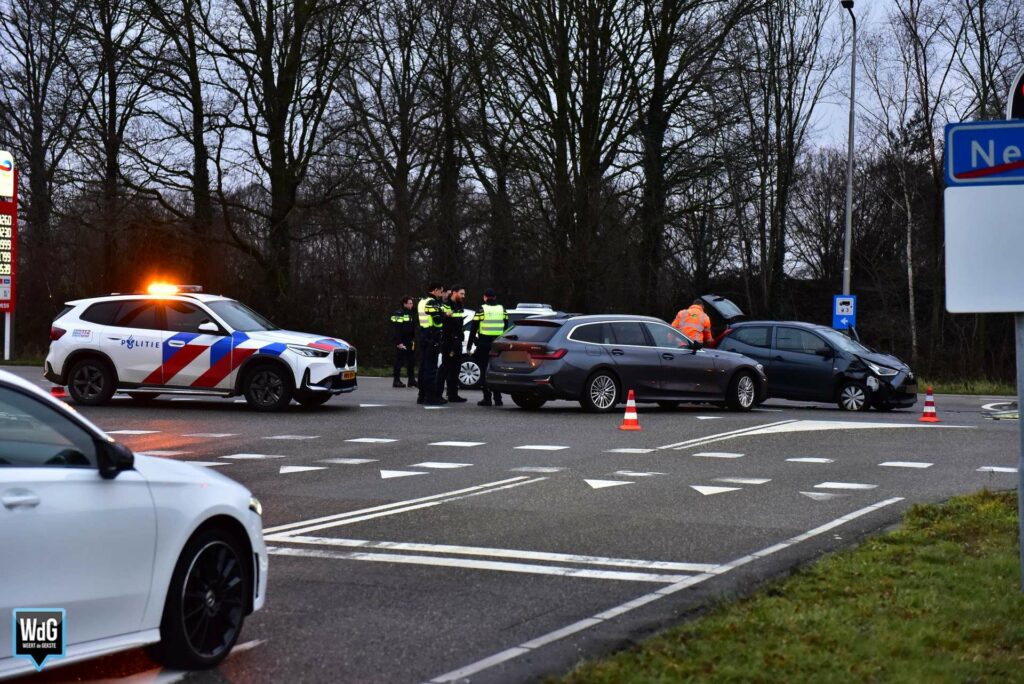 Door een nog onbekende oorzaak kwamen twee personenauto’s met elkaar in botsing. Niemand raakte gewond. Beide voertuigen liepen blikschade op.