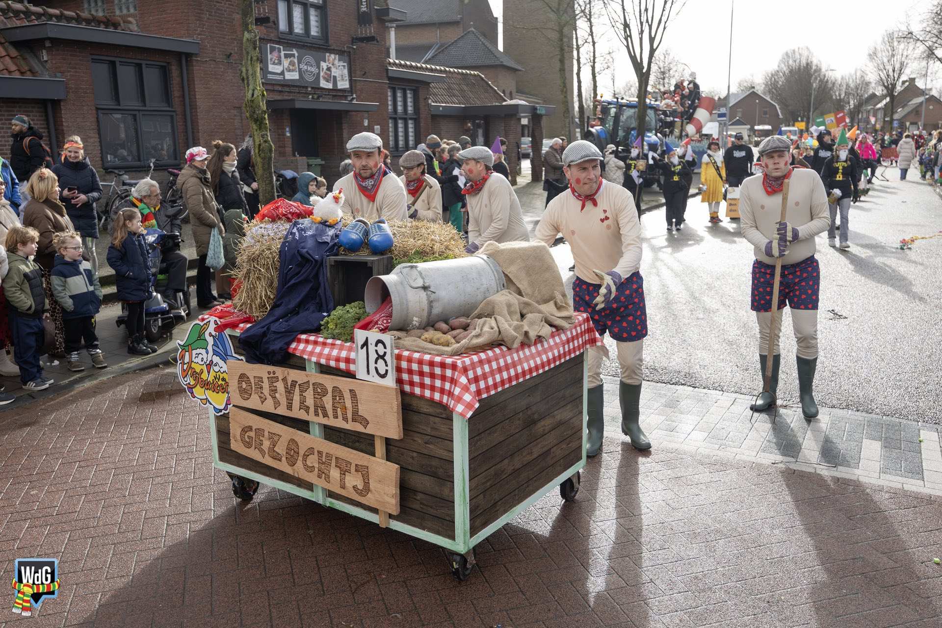 De stoet vertrok vanaf het Kerkplein en trok via onder meer de Boshoverweg door de wijk. Eenlingen en groepen en fraai opgebouwde voertuigen zorgden voor een gevarieerd en kleurrijk geheel. Creativiteit en humor stonden centraal, waarbij actuele onderwerpen op ludieke wijze werden uitgebeeld. De deelnemers hadden zichtbaar veel werk gemaakt van hun creaties.