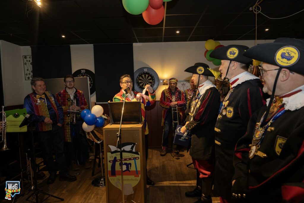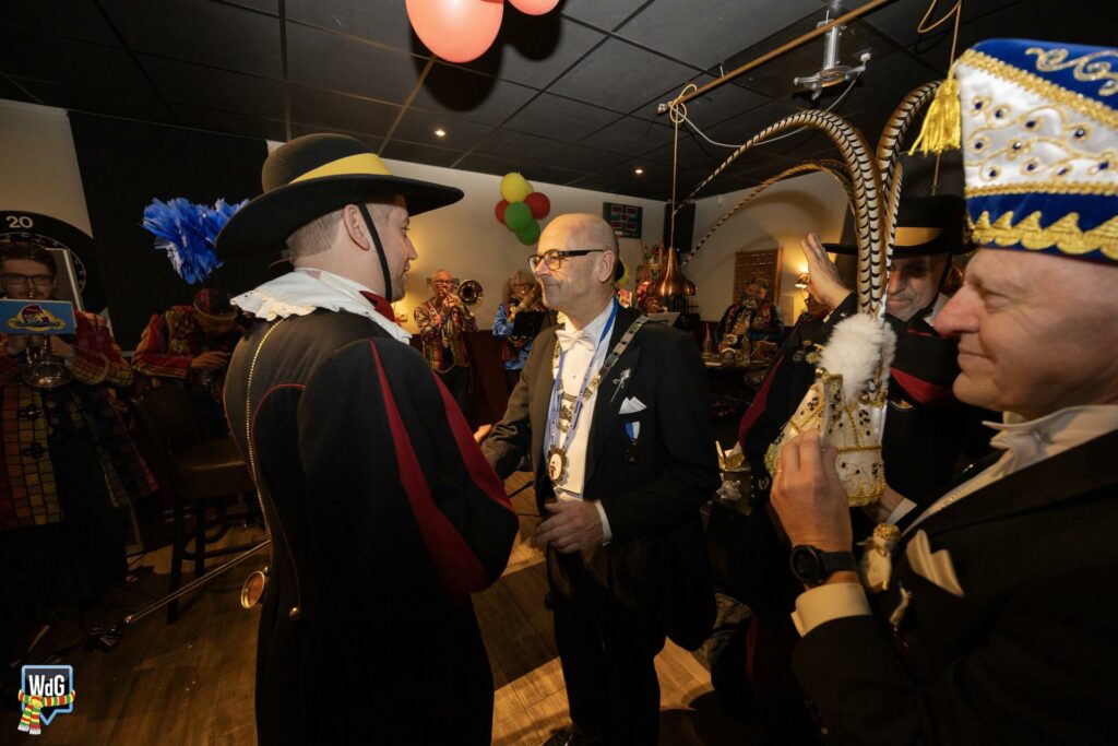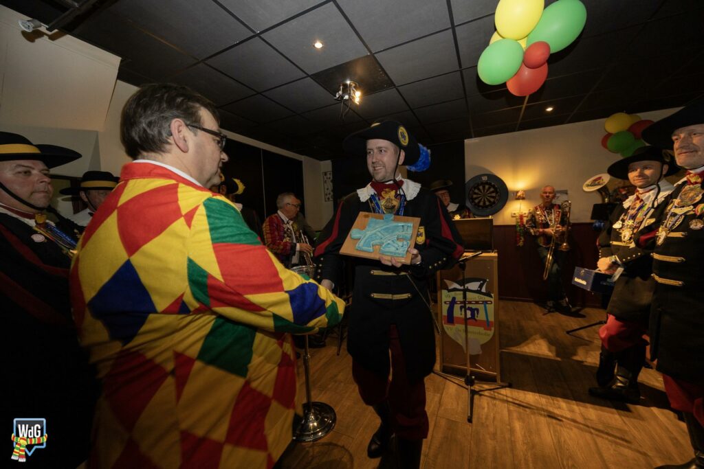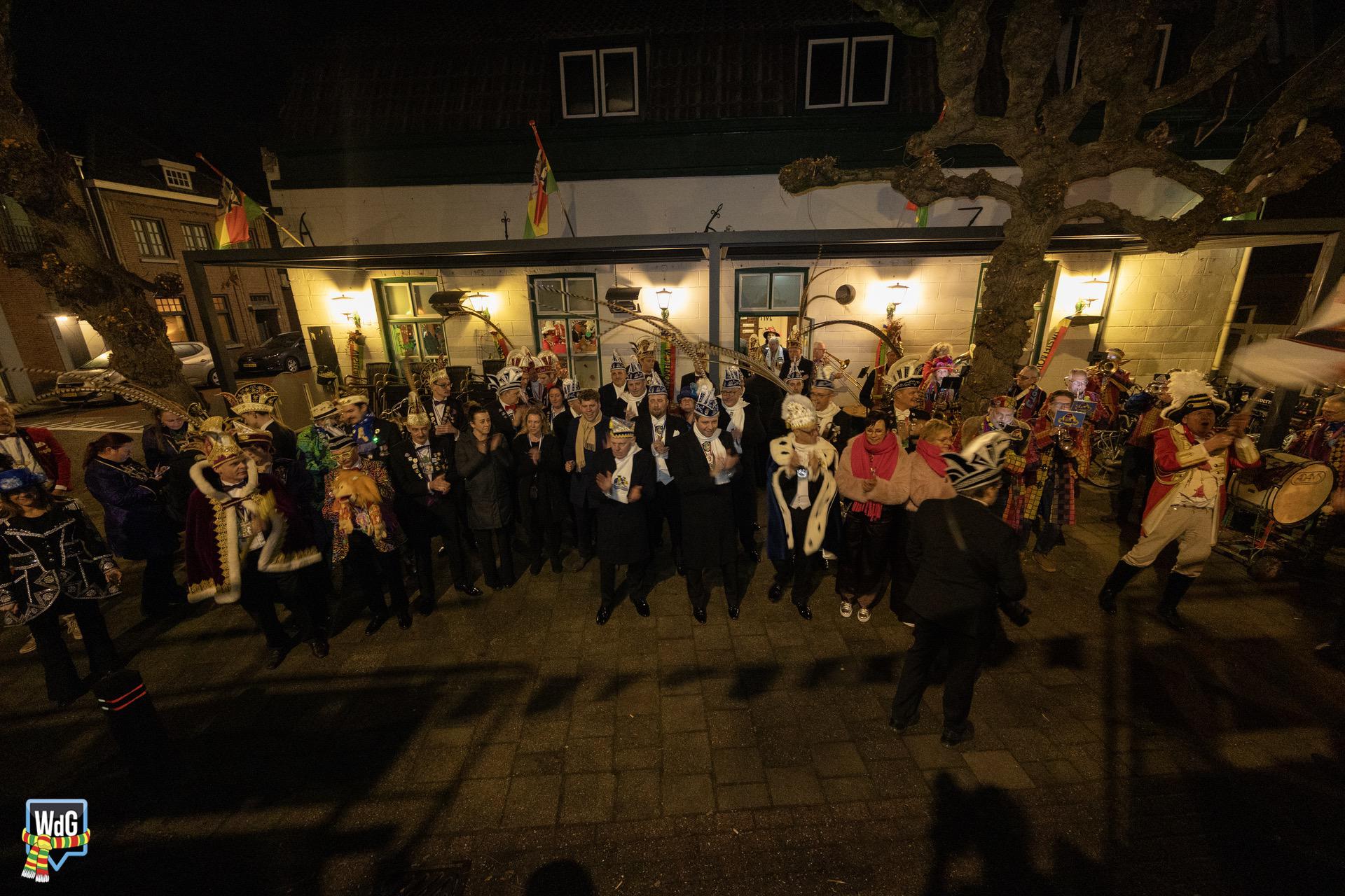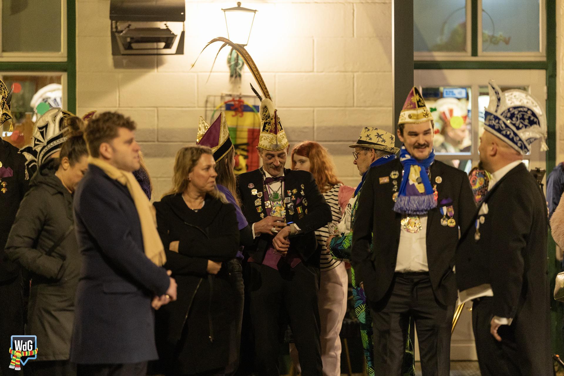 Eenmaal binnen aangekomen werd het gezelschap toegesproken en welkom geheten door burgemeester Vlecken. Tijdens het woord van de kapitein werden er grappen gemaakt over de toespraak van de burgemeester en was er, net als vorig jaar, een humoristische uitwisseling.