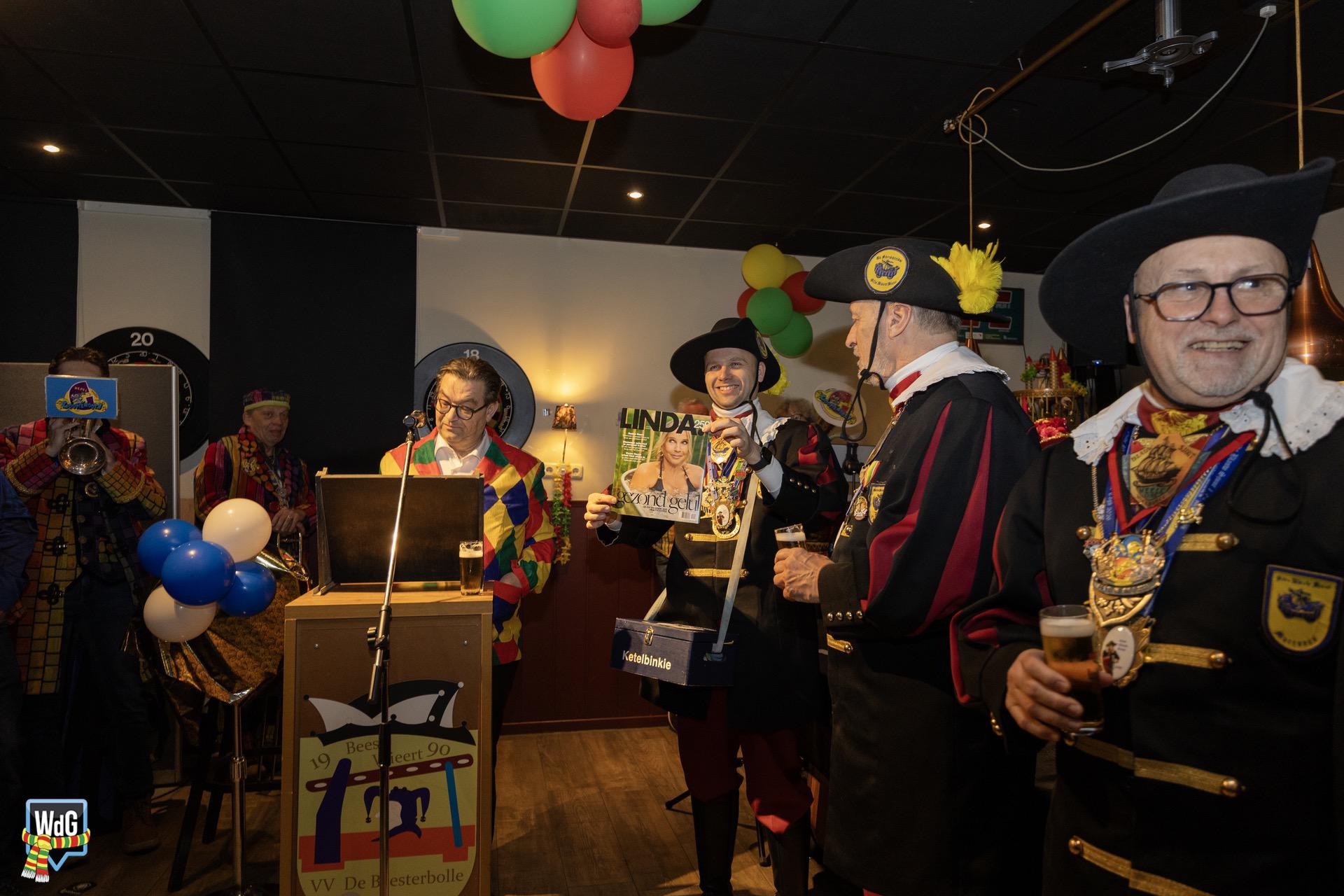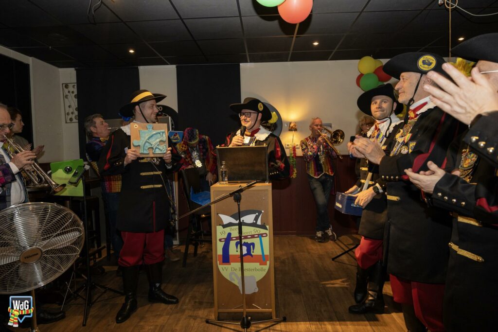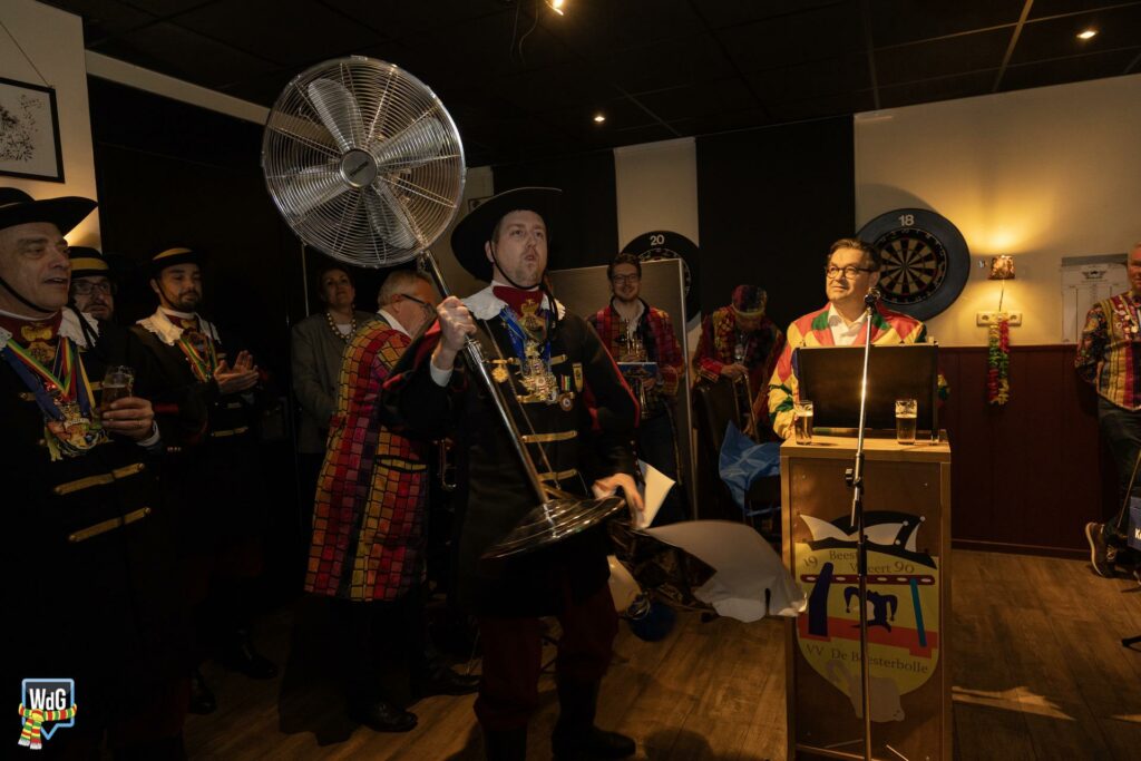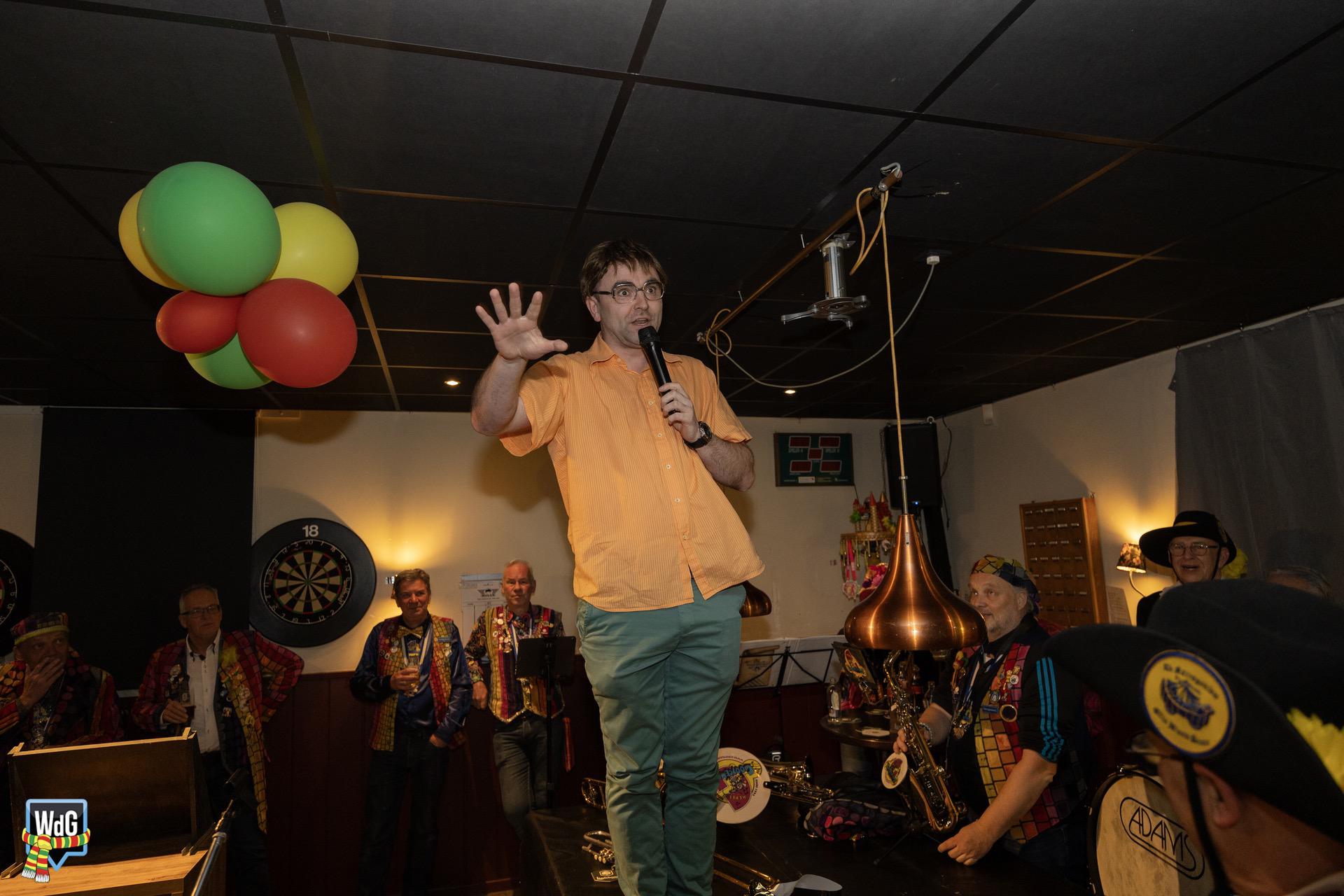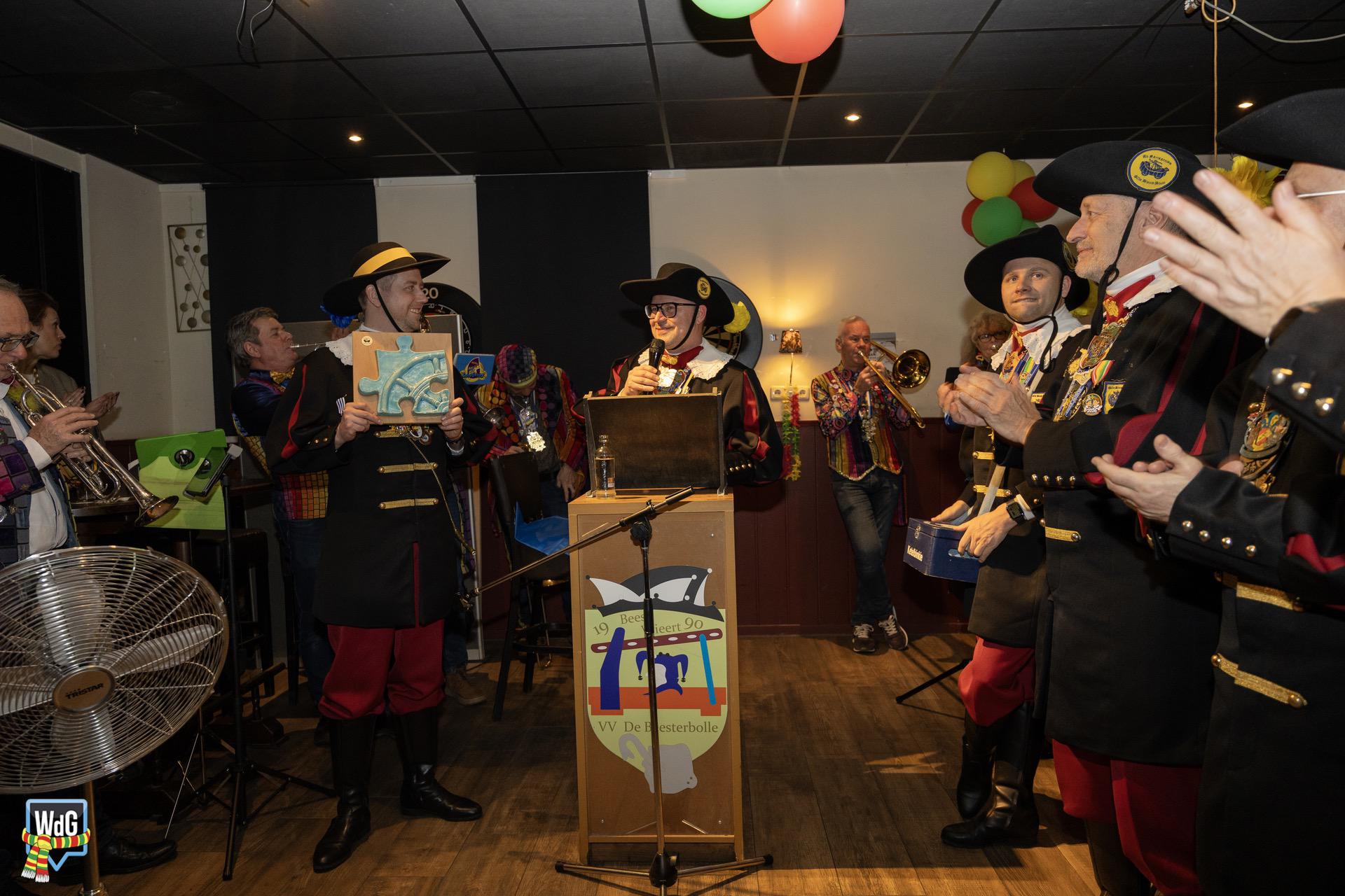 Eenmaal binnen aangekomen werd het gezelschap toegesproken en welkom geheten door burgemeester Vlecken. Tijdens het woord van de kapitein werden er grappen gemaakt over de toespraak van de burgemeester en was er, net als vorig jaar, een humoristische uitwisseling.