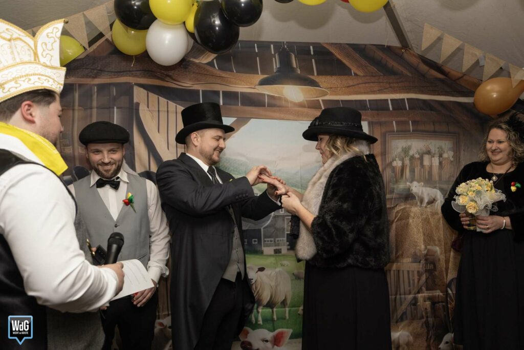 De bruidegom van V.V. Vreug of Laat is Regi Keulen, oftewel ‘det is d’r eine van Pellie’. Hij is 31 jaar oud en geboren en getogen op Moesel. Tegenwoordig woont hij echter samen met Esther Kampers en de kindjes op Keent.
