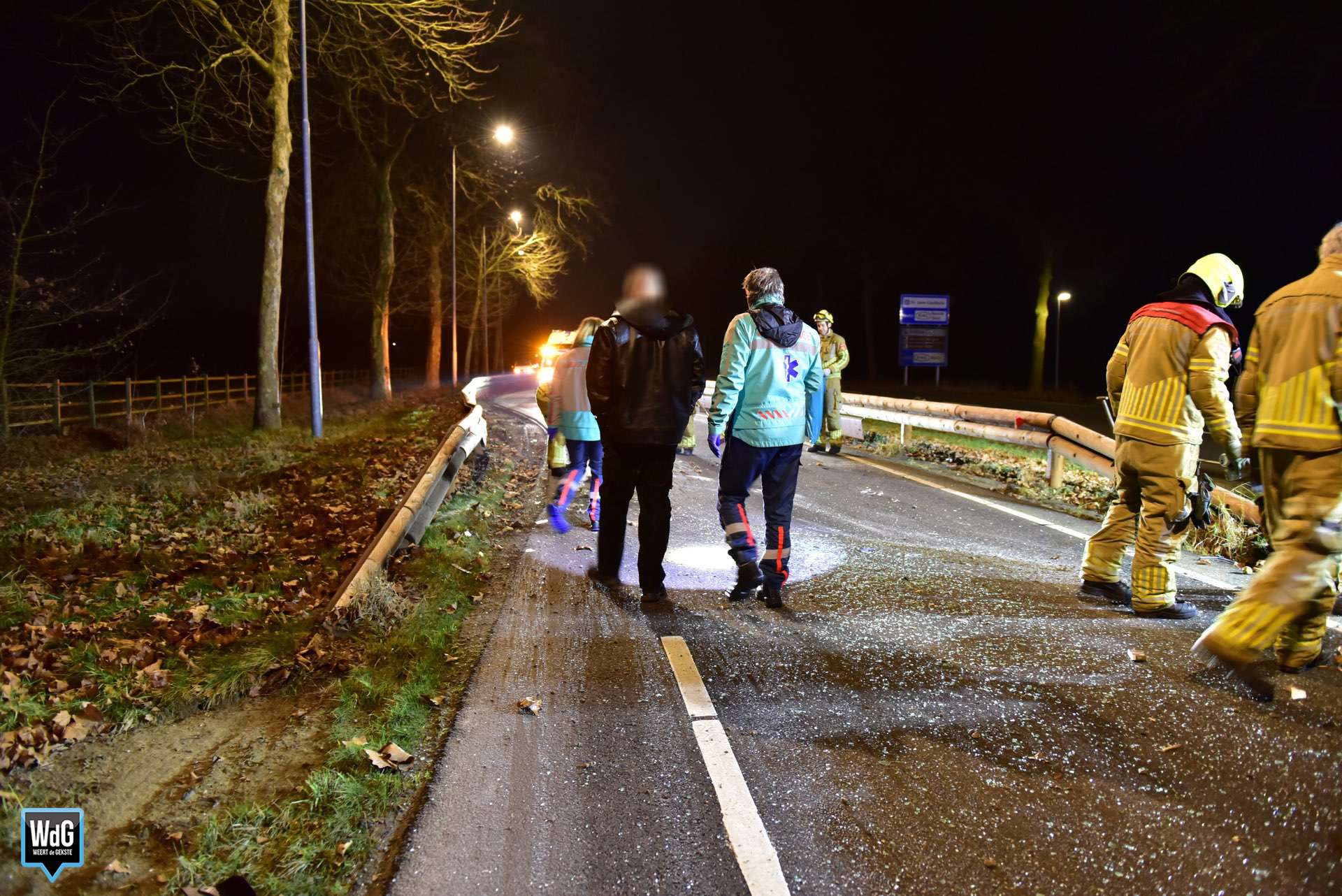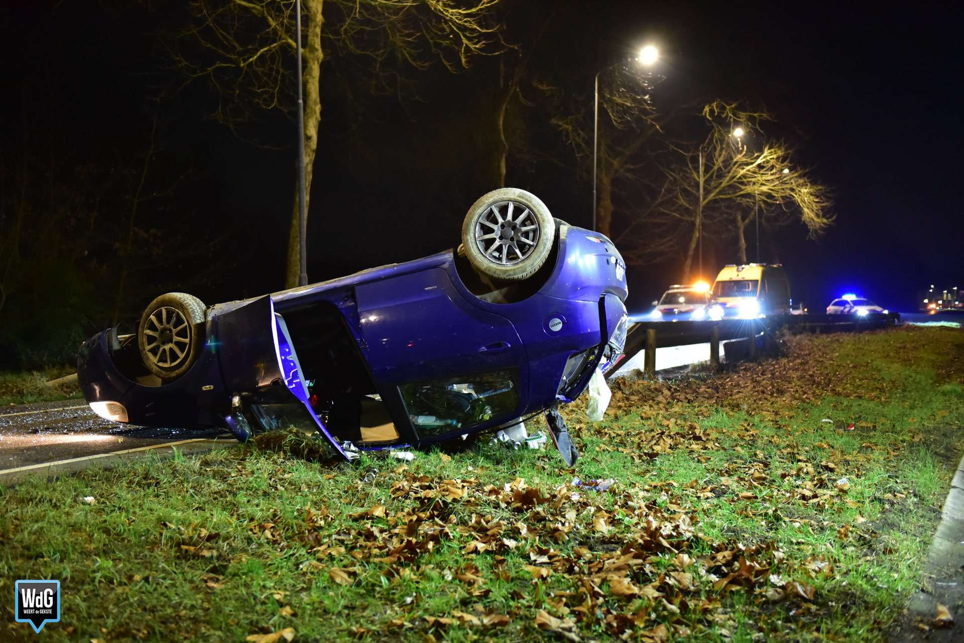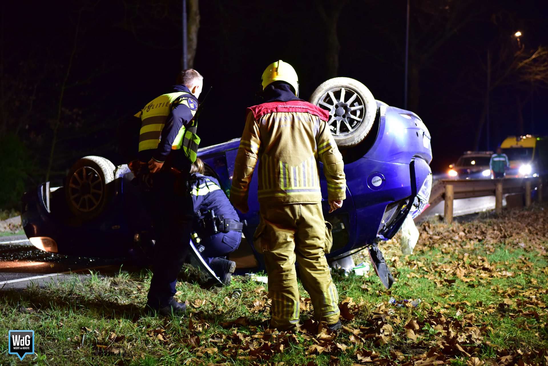 Meerdere politie-eenheden kwamen ter plaatse, evenals de brandweer en een ambulance. De bestuurder werd onderzocht door zowel het toegesnelde ambulancepersoneel als de politie. Omdat de man gewond was geraakt en onder invloed bleek te zijn, werd hij onder politiebegeleiding met de ambulance naar het ziekenhuis vervoerd.