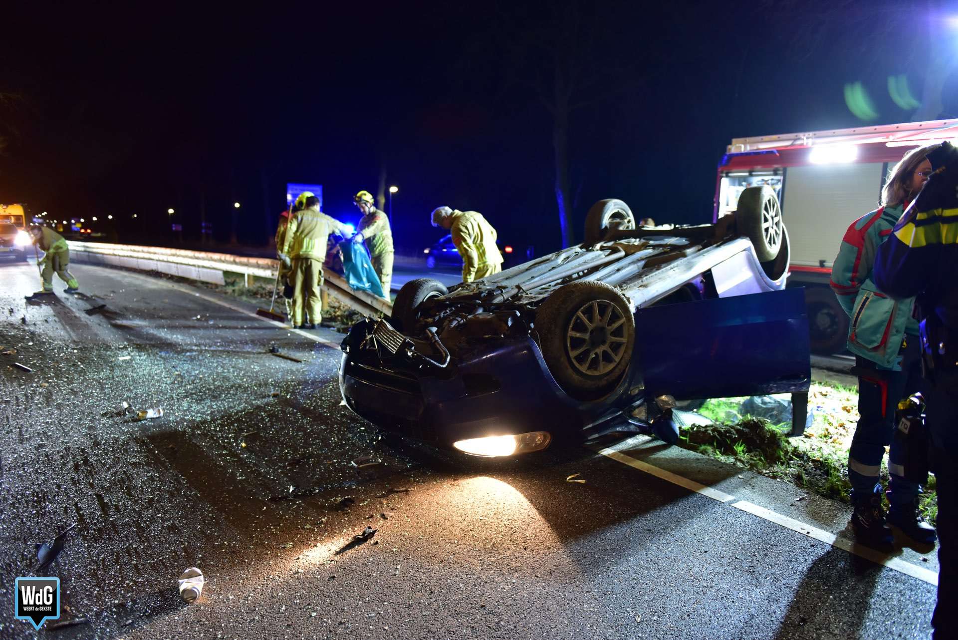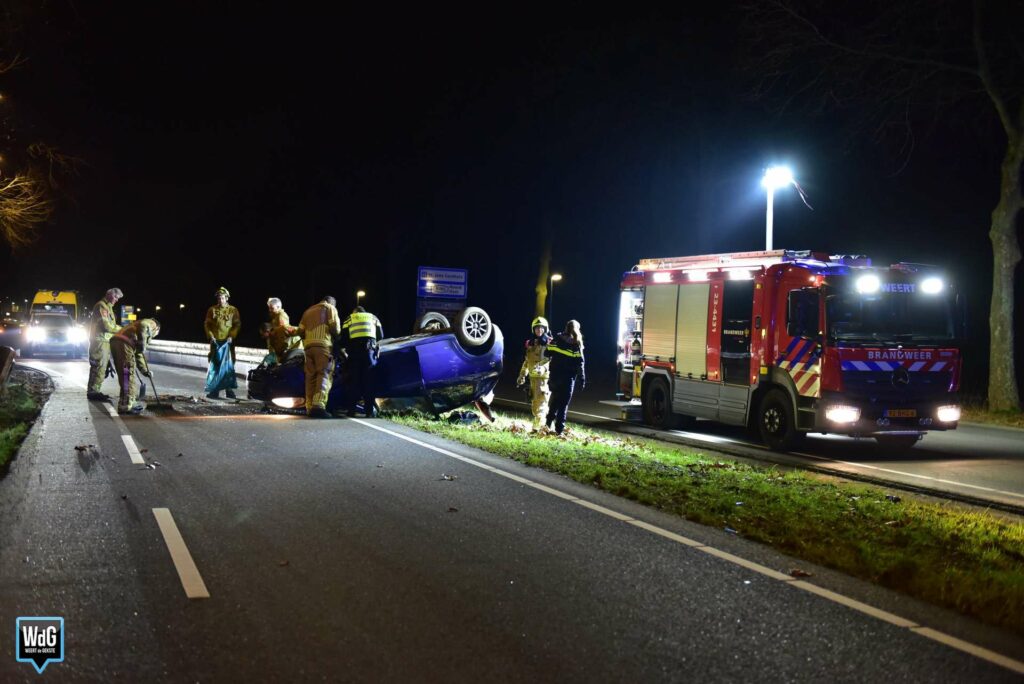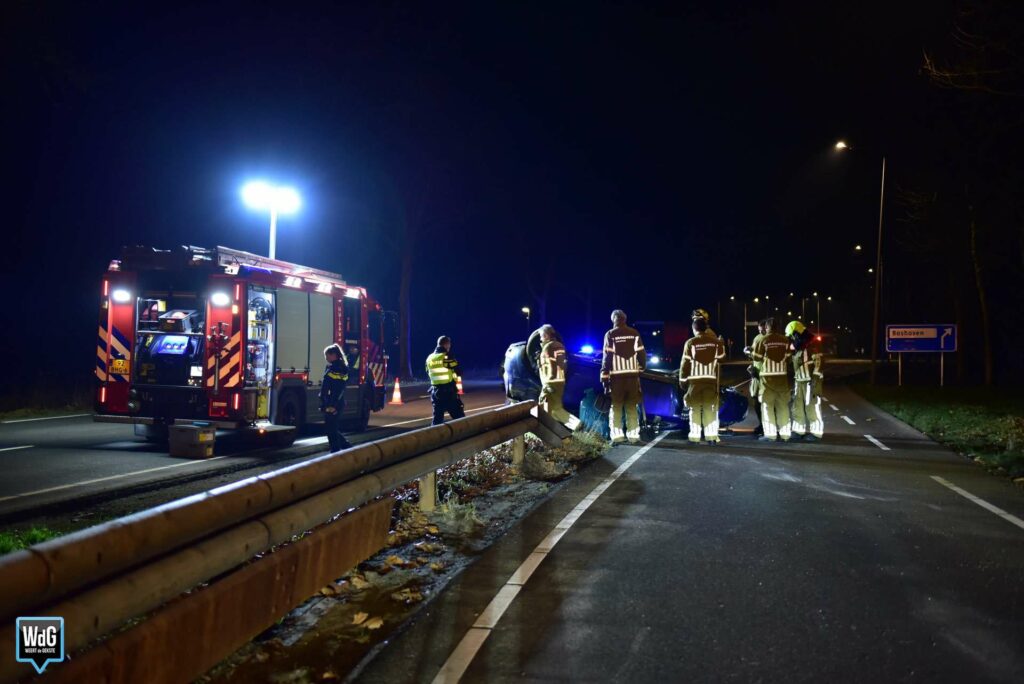 Een automobilist, komende vanuit Weert, was daar met hoge snelheid gelanceerd over een houten vangrail. Het voertuig kwam 100 meter verderop op de kop tot stilstand. De bestuurder kon op eigen kracht zijn auto verlaten.
