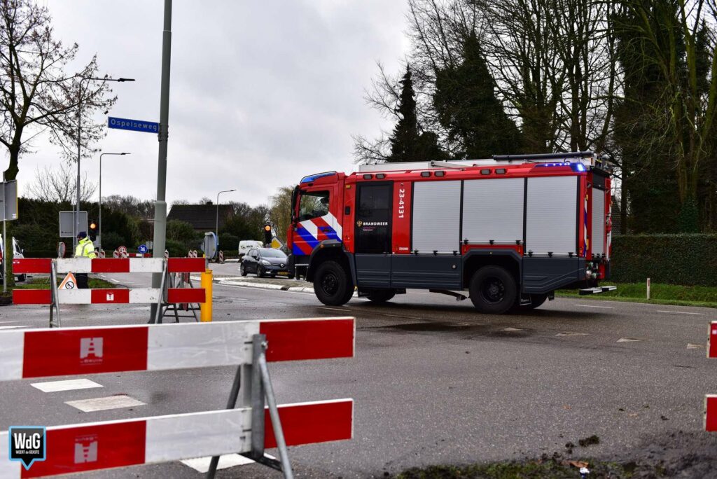 De brandweer kwam met spoed ter plaatse en stelde de omgeving veilig. In verband met de windrichting werd de Ospelseweg afgezet met lint.