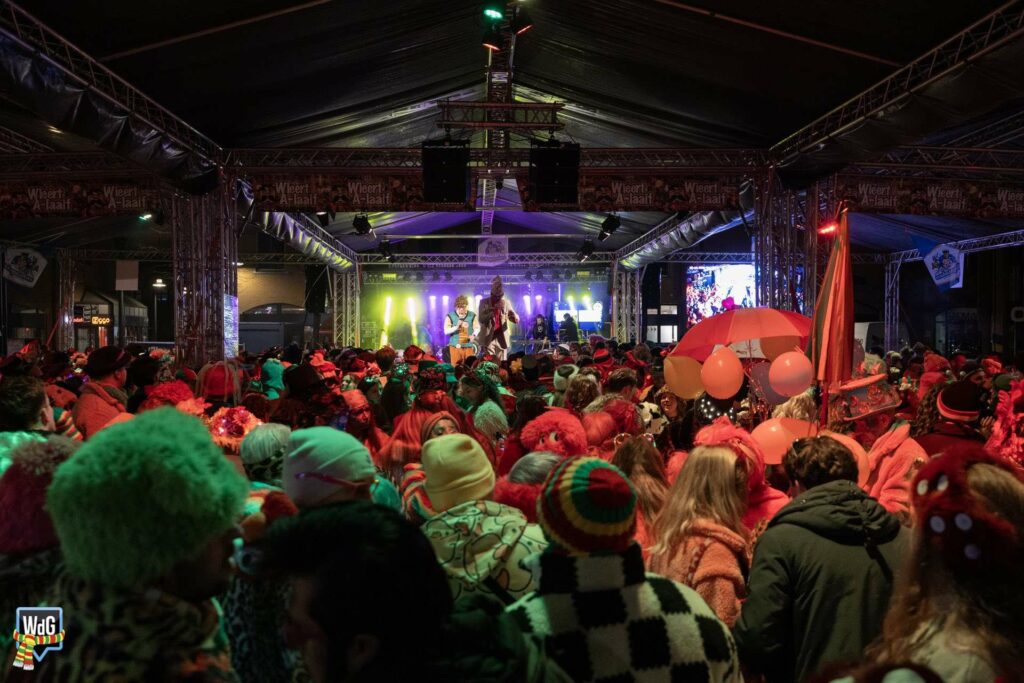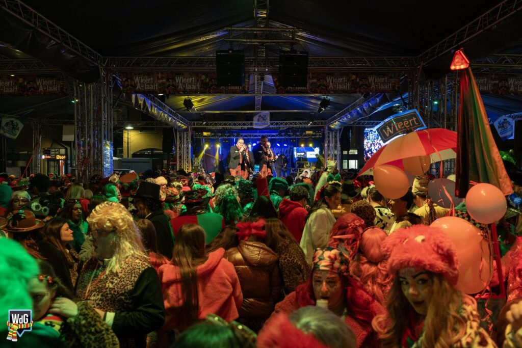 Ook in Wieërt was het gezellig druk tijdens ‘Vastelaovendj inne Stad’ in het centrum. Ondanks de kou gingen veel mensen naar buiten om vastelaovendj te vieren.