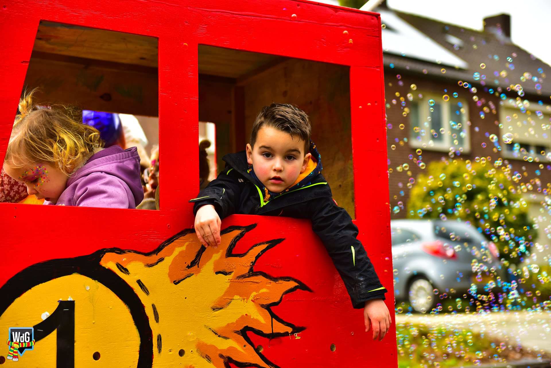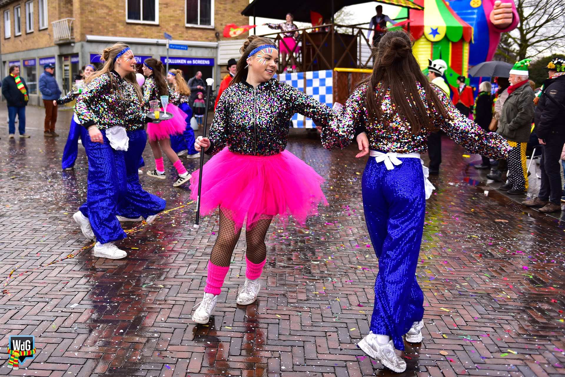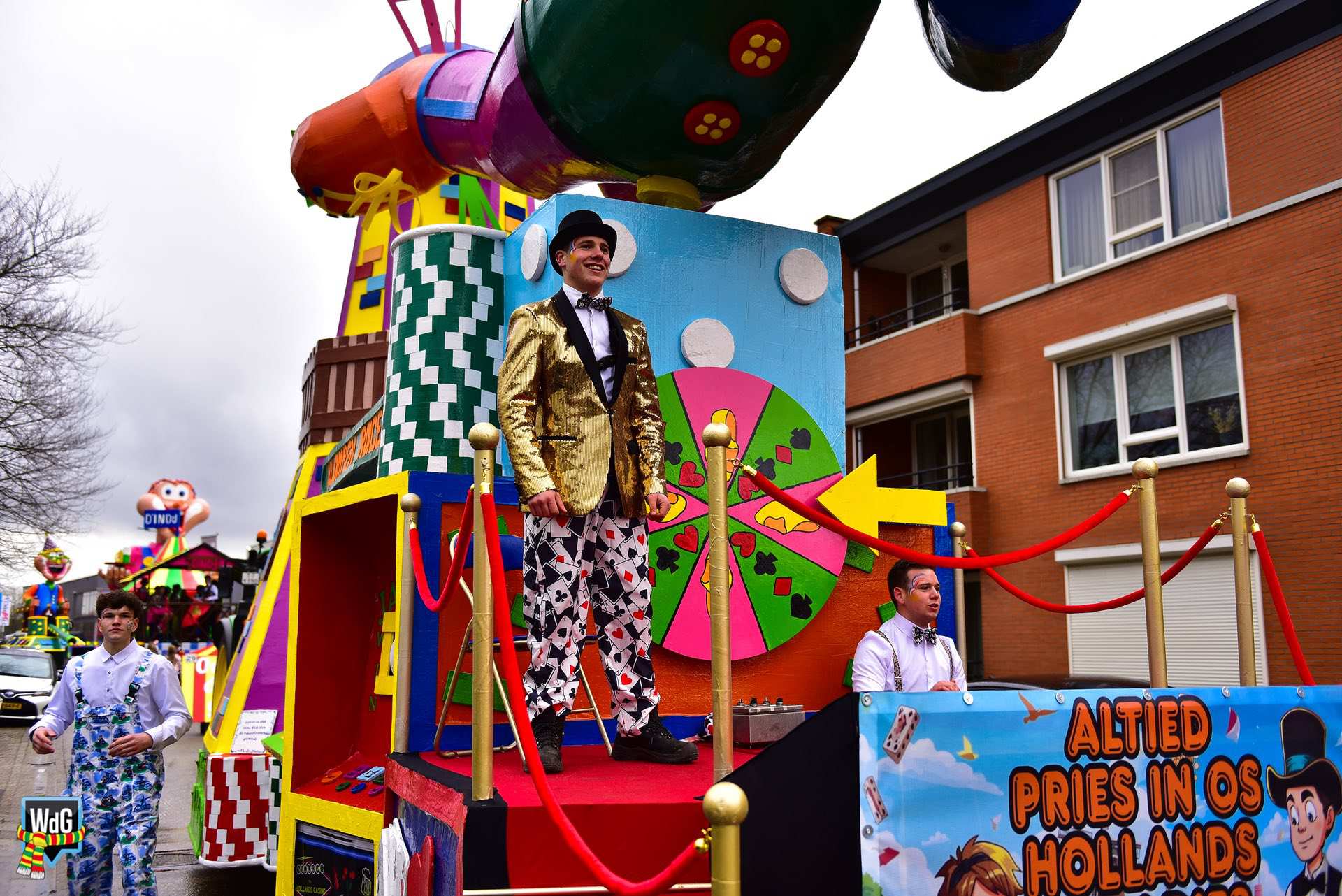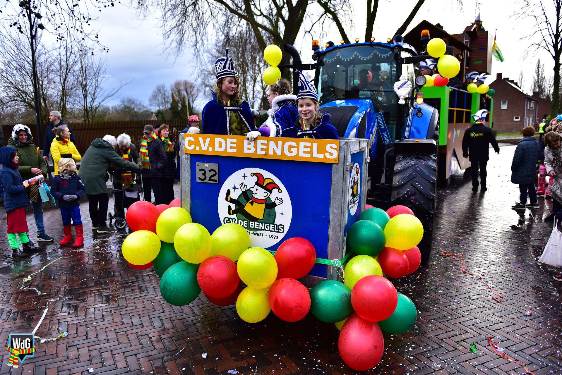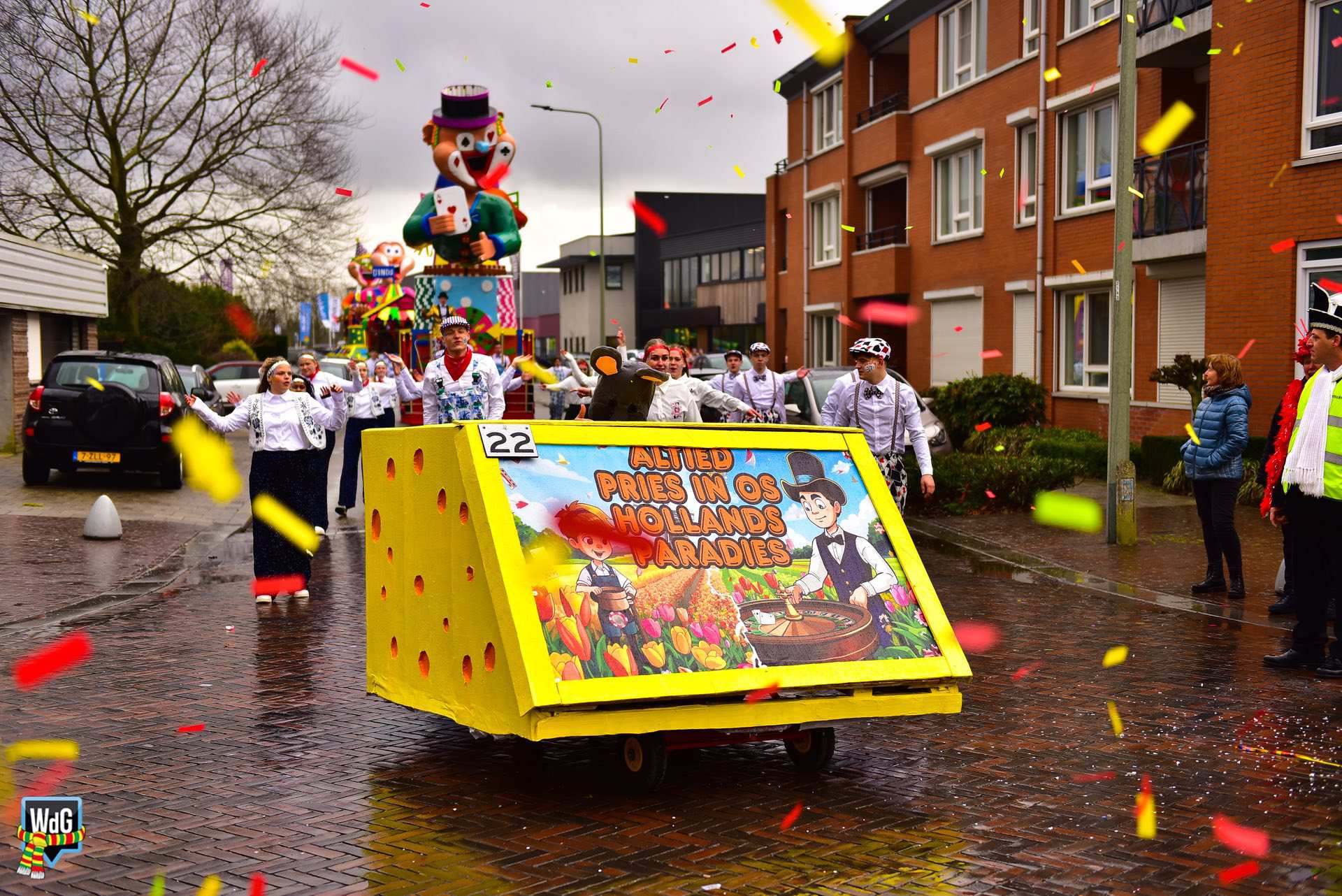 De stoet bestond uit een gevarieerd gezelschap van eenlingen, loopgroepen en imposante praalwagens zoals een grote tank. De creativiteit was zichtbaar in de tot in detail uitgewerkte kostuums, ludieke thema’s en actuele knipogen naar het dorp en de actualiteit zoals de ‘vet-bike’.