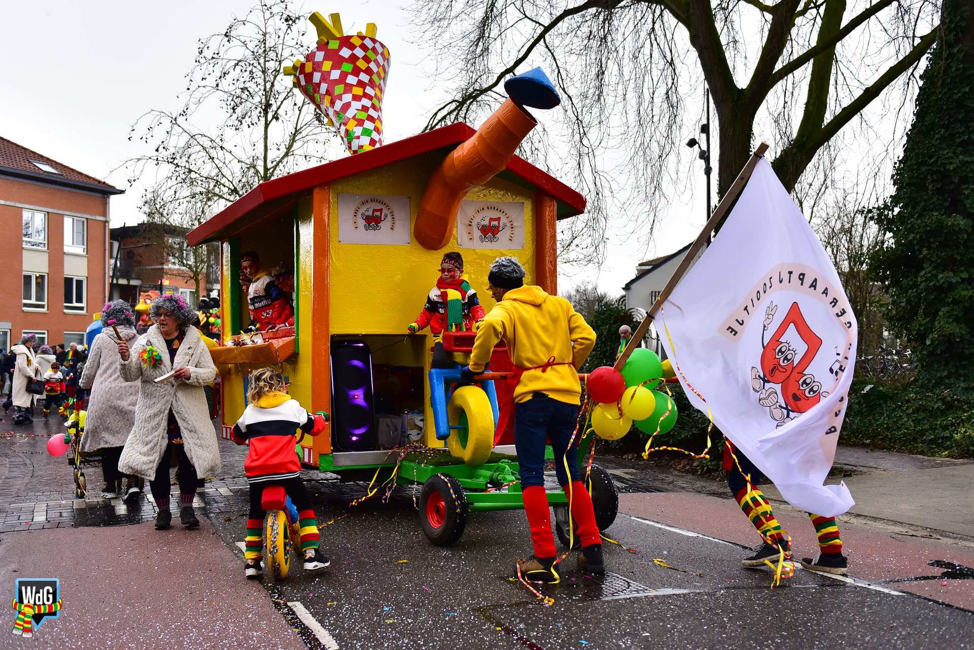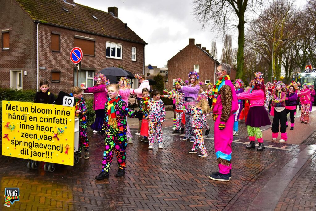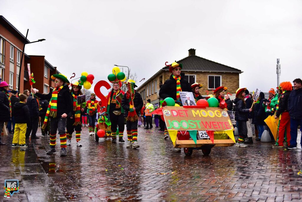 Nederweert – In Nederweert trok maandagmiddag een kleurrijke en gezellige carnavalsoptocht door de straten. Ondanks de natte weersomstandigheden stond het publiek met veel belangstelling langs de route om de deelnemers toe te juichen.