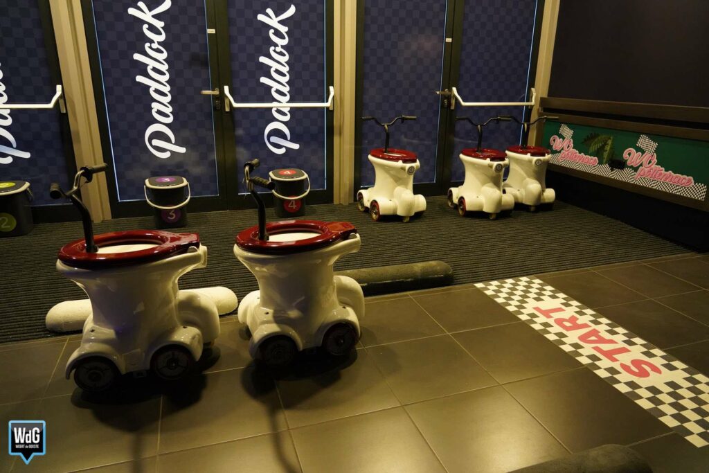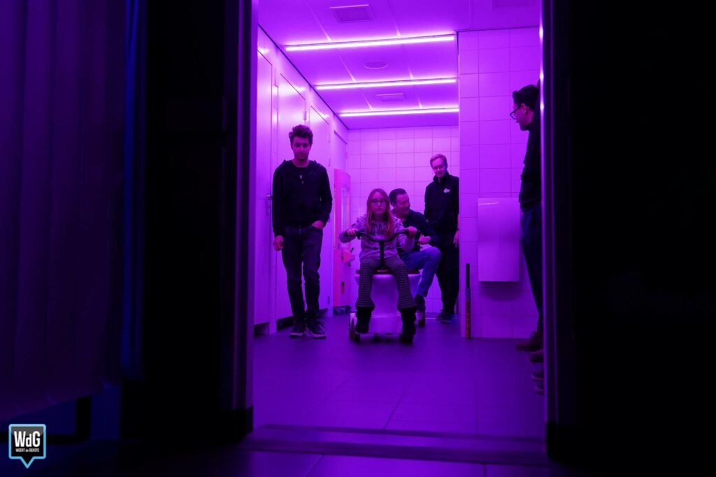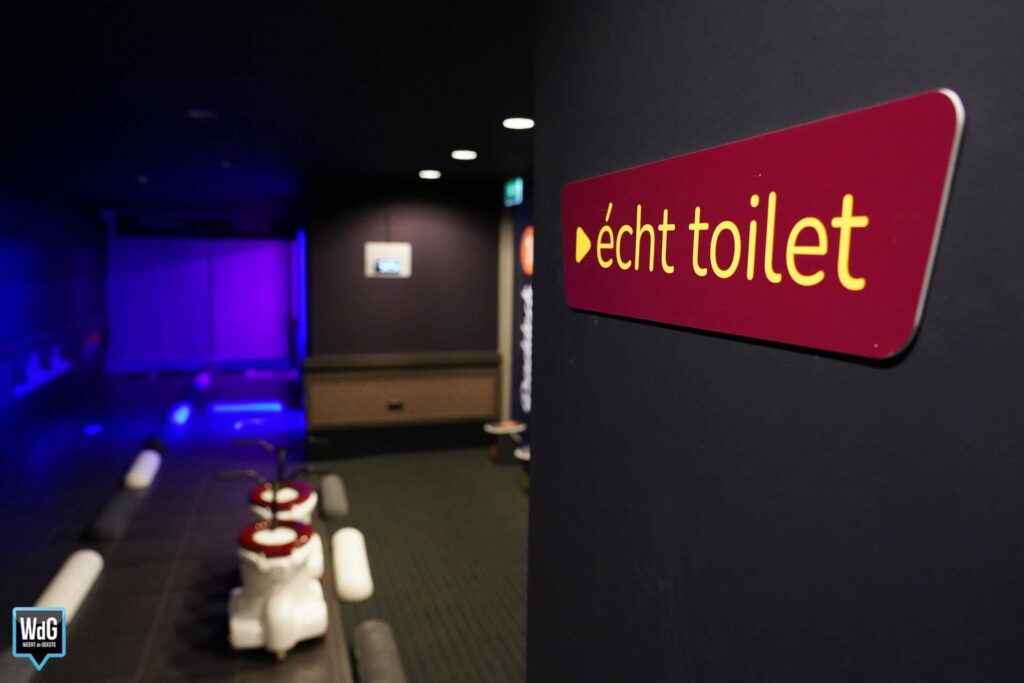 De wethouder opende het gloednieuwe Weerter entertainmentcenter door op een WC-pot door een lint te rijden. Deze rijdende pot is onderdeel van de WC Pottenrace, die ook in het centrum te vinden is. Twee van de vele toiletruimtes dienen vanaf nu als circuit, waarin deelnemers aan de race punten moeten verzamelen.
