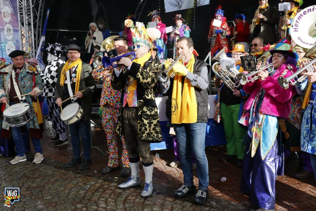 Op de wisselvallige dinsdag zorgden de ‘Wieërter hermeniekes’ voor constante gezelligheid in de straten en cafés van de Weerter binnenstad. Op de Markt vond de Artiestekerresjel / het Oeëpe Podium plaats, waar diverse artiesten optraden en het publiek vermaakten.