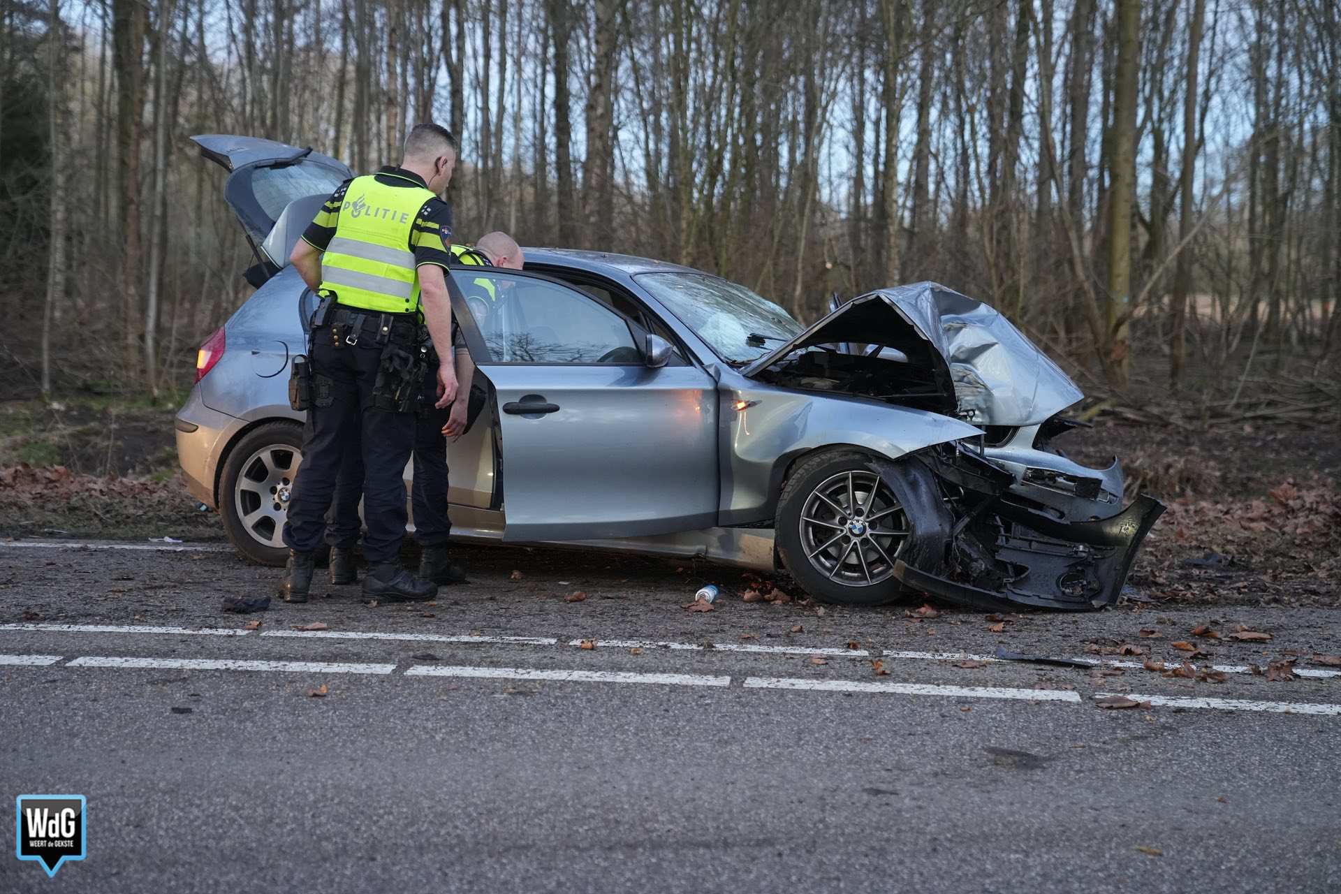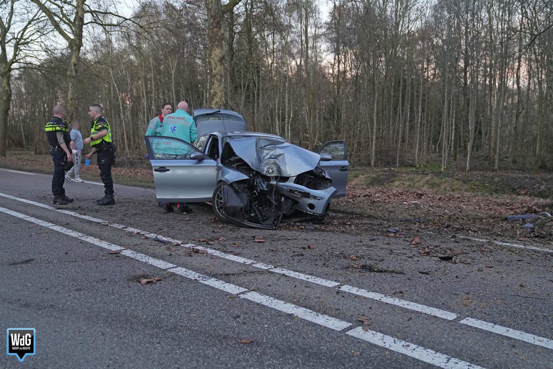 In de auto zaten twee mannen. De bestuurder raakte lichtgewond aan zijn hand en kon zelfstandig het voertuig verlaten. De passagier moest met hulp uit de auto worden gehaald en werd vervolgens op een brancard gelegd. Beide mannen zijn per ambulance overgebracht naar het ziekenhuis.
