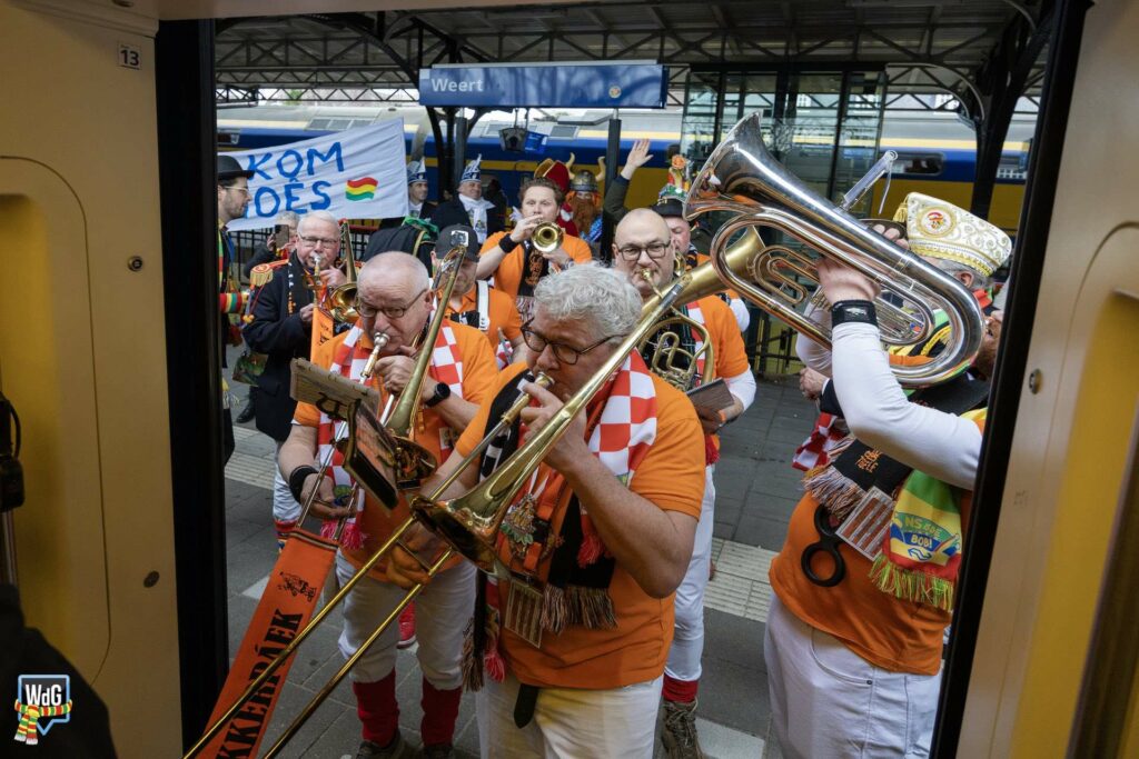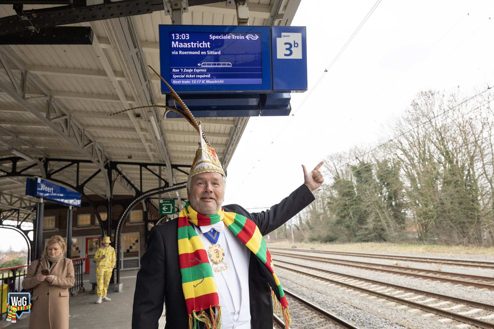 Ook in Weert, waar de trein rond 13:00 uur stopte, was de belangstelling groot. Reizigers stapten in om verder naar het zuiden te reizen. Lex Uiting was als gastheer aanwezig in de trein en zorgde onderweg voor de carnavaleske sfeer. In Weert kreeg hij gezelschap van John Tana, die daar instapte en het feest verder opluisterde.