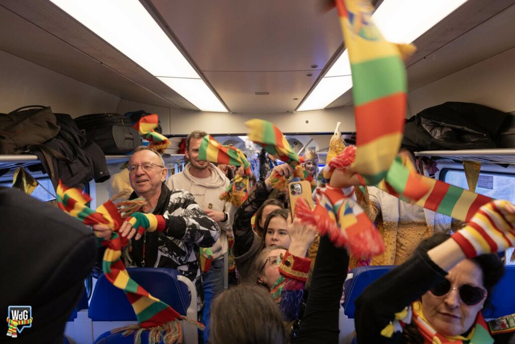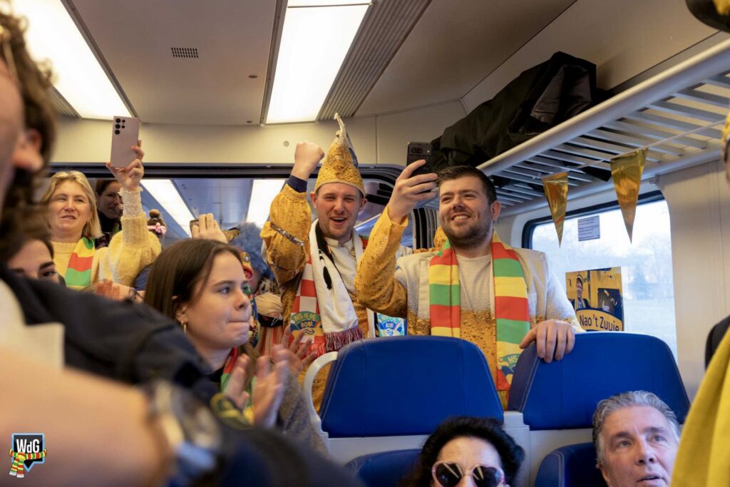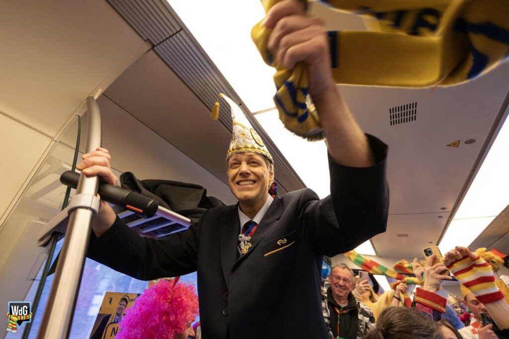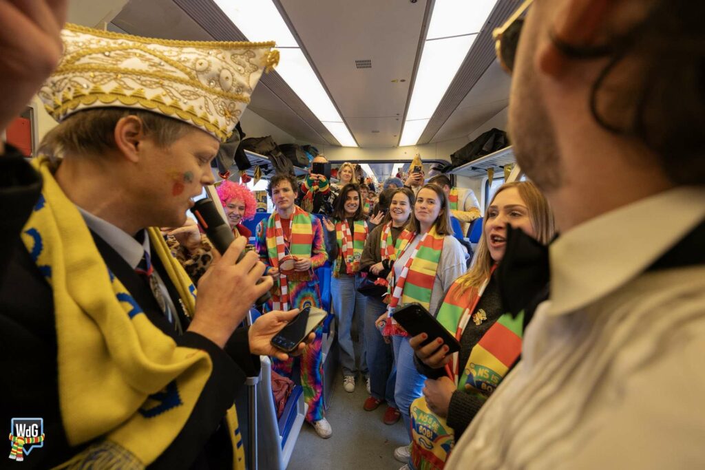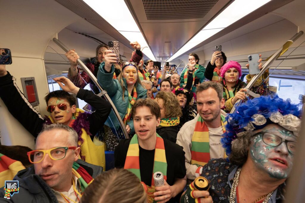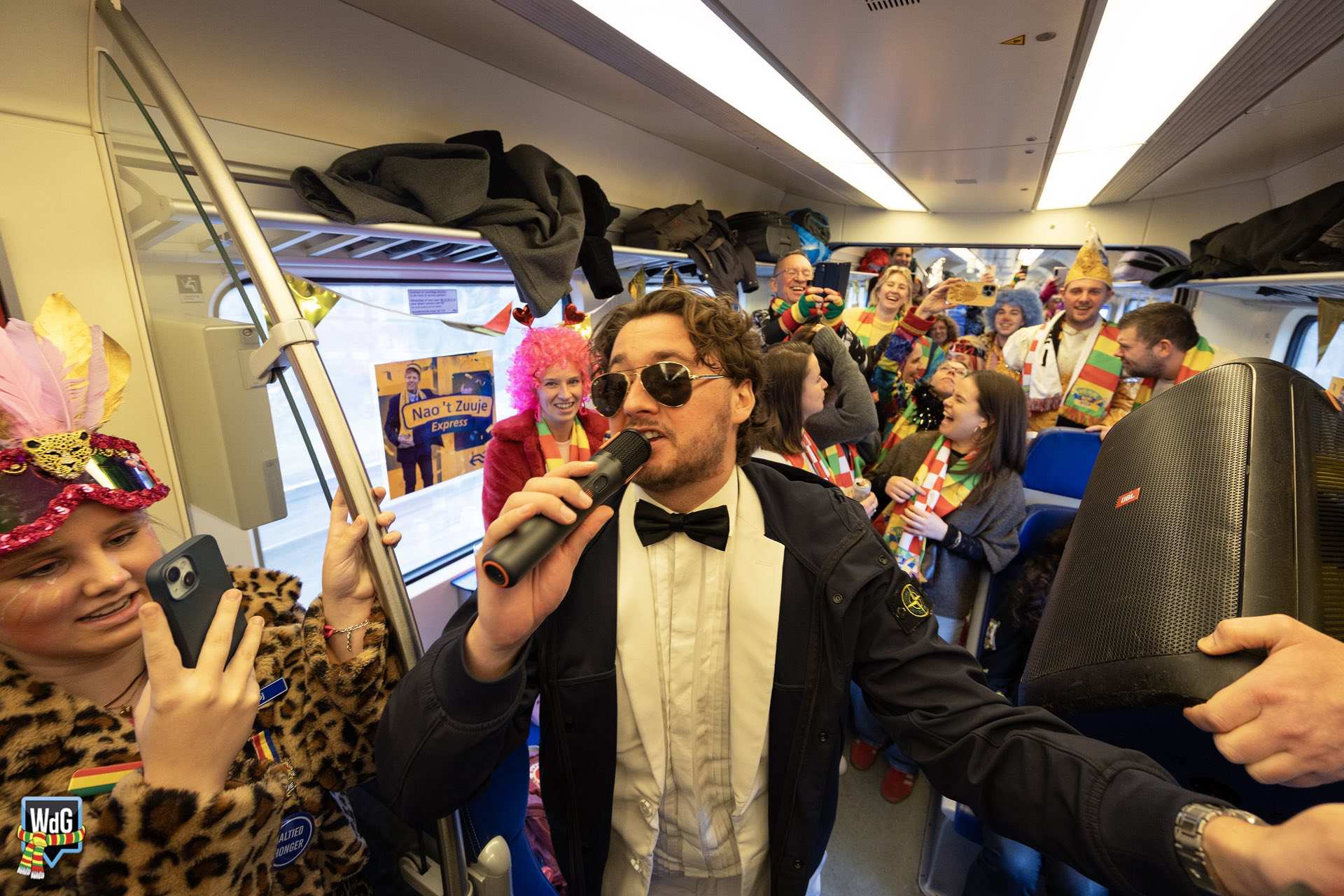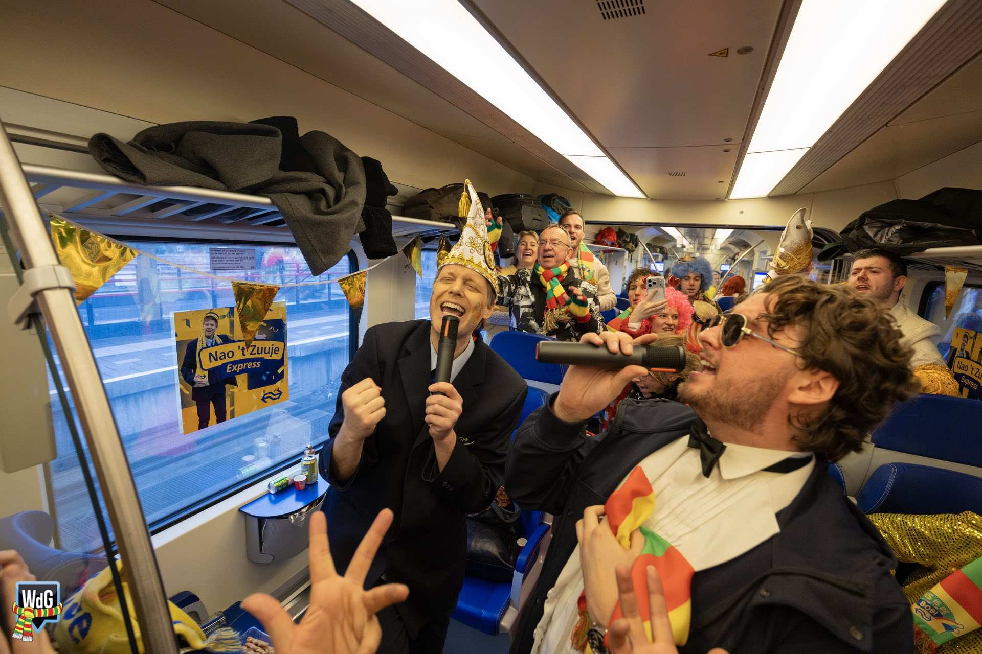 De Nao ’t Zuuje Express van NS en Lex Uiting heeft vrijdag voor een volle trein gezorgd richting het zuiden. De speciale carnavalsrit, die vanuit Amsterdam vertrok, zat goed vol met feestvierders die terugreisden naar hun roots voor carnaval en vastelaovendj.