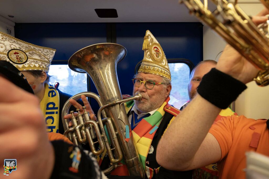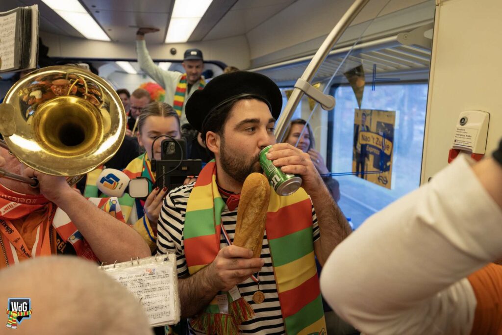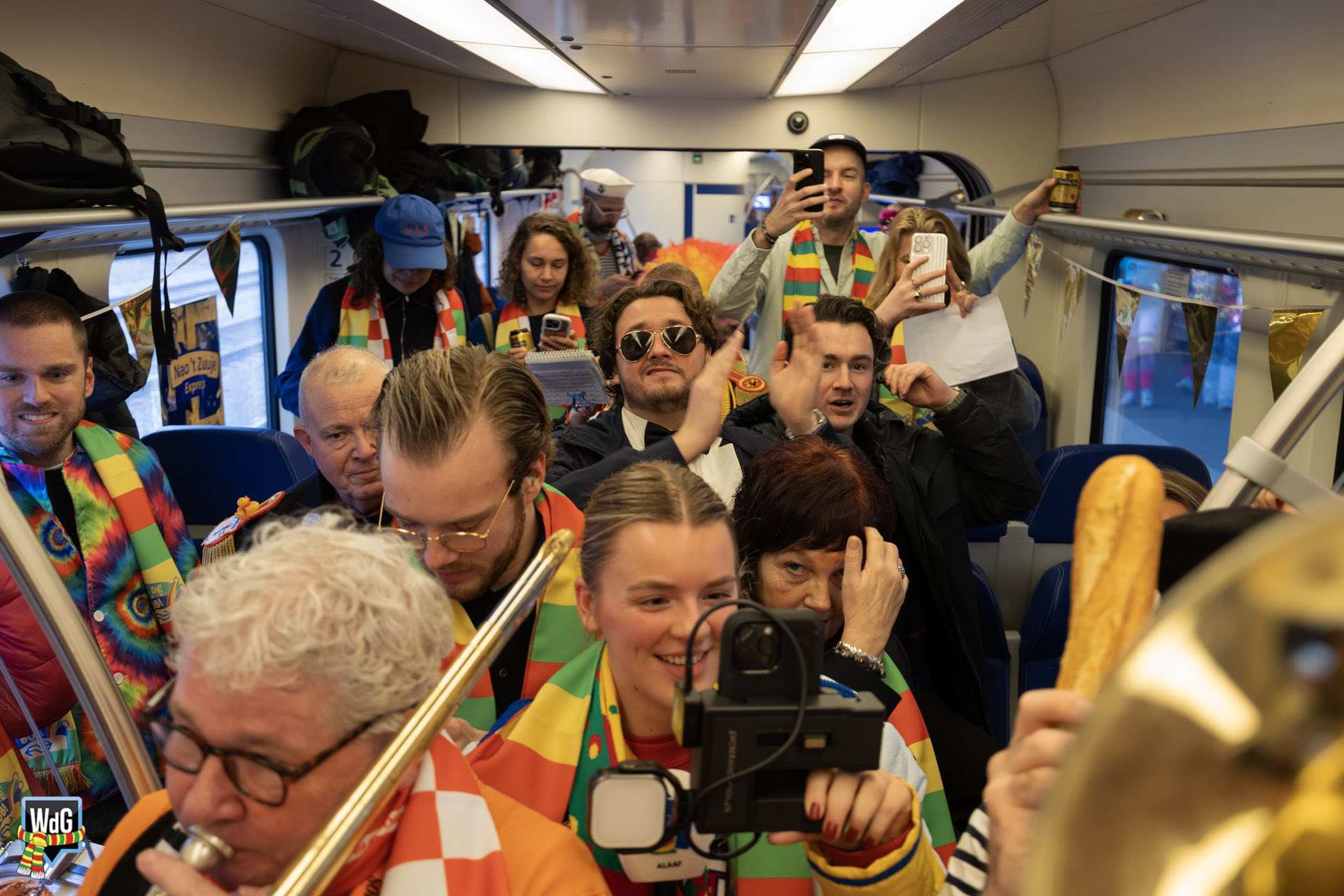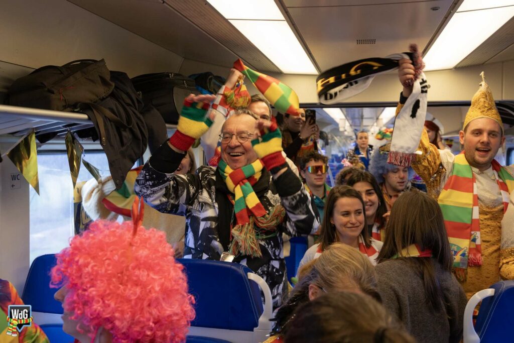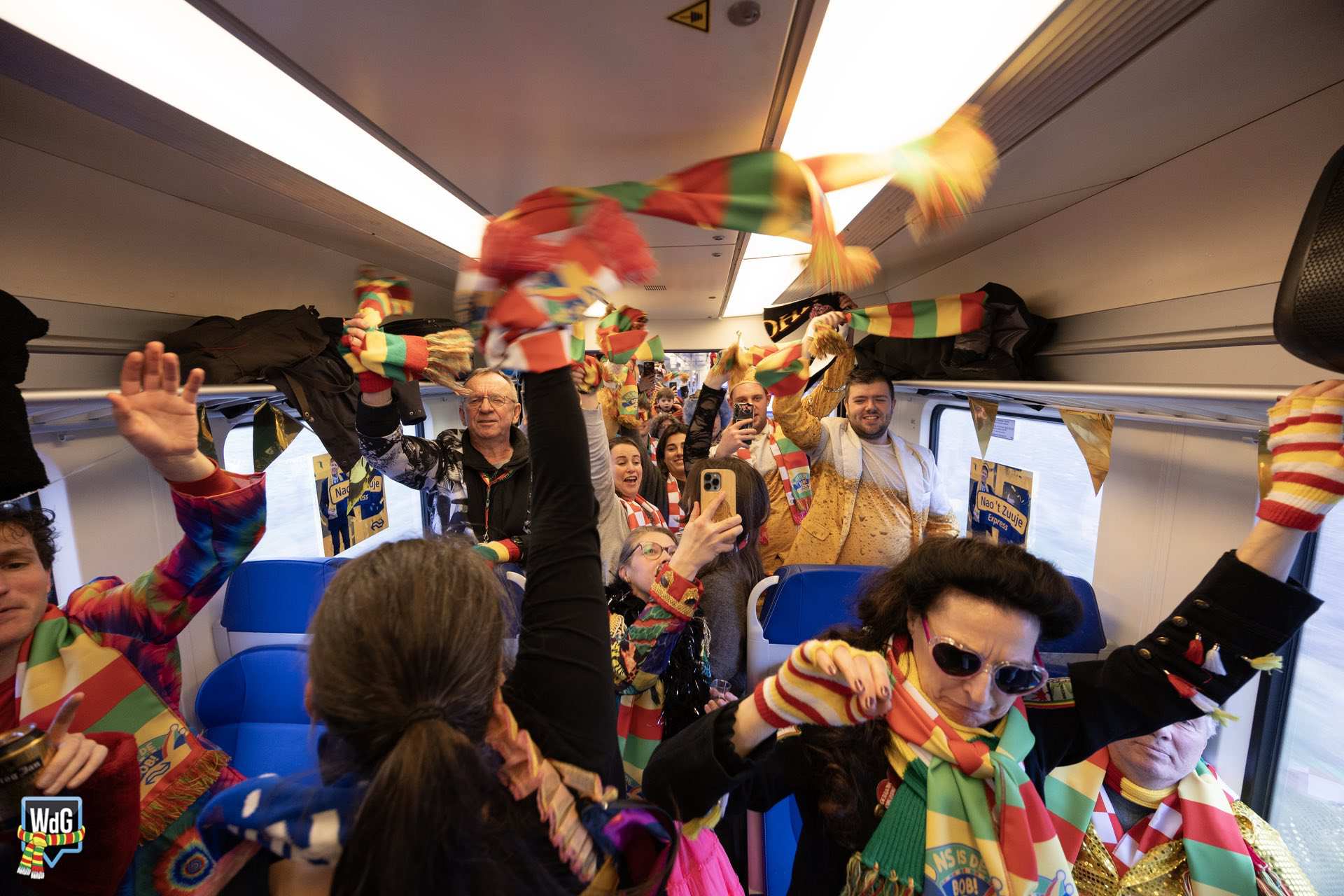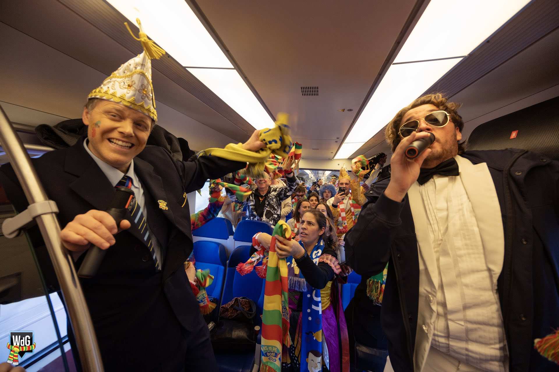 De Nao ’t Zuuje Express van NS en Lex Uiting heeft vrijdag voor een volle trein gezorgd richting het zuiden. De speciale carnavalsrit, die vanuit Amsterdam vertrok, zat goed vol met feestvierders die terugreisden naar hun roots voor carnaval en vastelaovendj.
