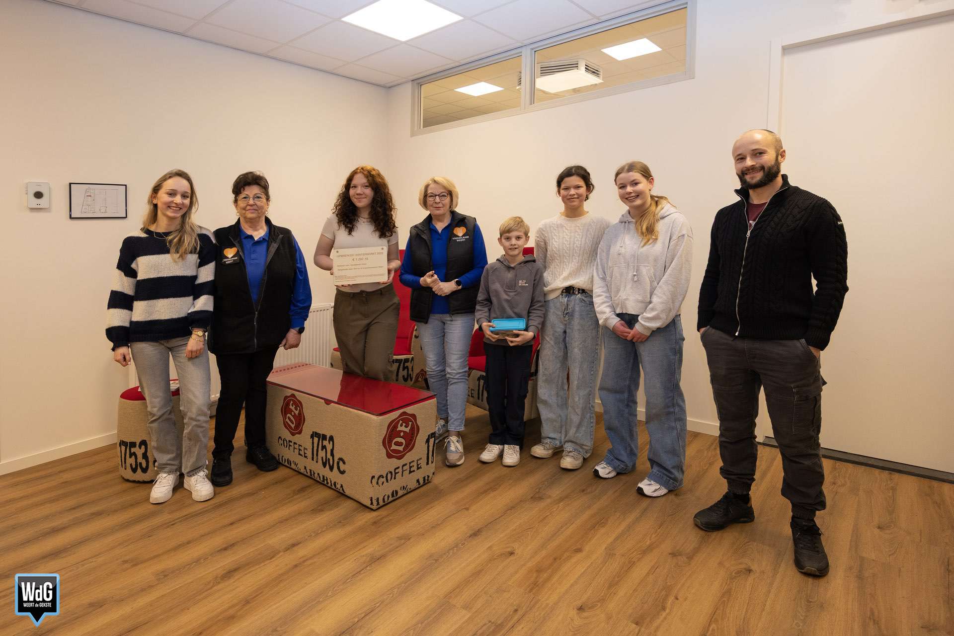 Leerlingen van de leerlingenraad werkten mee aan het organiseren van de wintermarkt. Ze hielpen onder andere bij het ontwerpen van de flyer, het opstellen van een persbericht, het flyeren in de buurt en het kiezen van een goed doel. Op donderdag 5 februari waren zij dan ook aanwezig om de cheque met de opbrengst van de wintermarkt te overhandigen aan Voedselbank Weert.