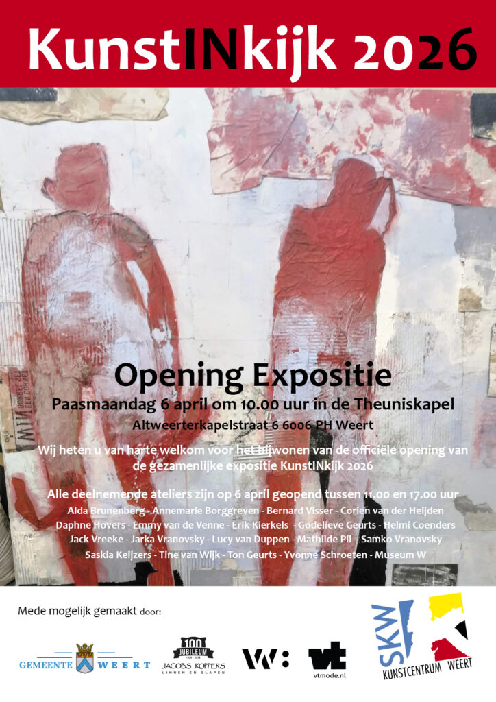 Op tweede paasdag, maandag 6 april 2026, vindt in Weert en omgeving opnieuw de jaarlijkse KunstInKijk plaats. Een dag waarop bezoekers worden uitgenodigd om op zoek te gaan naar kunst en een uniek kijkje te nemen in het creatieve proces van de deelnemende kunstenaars.