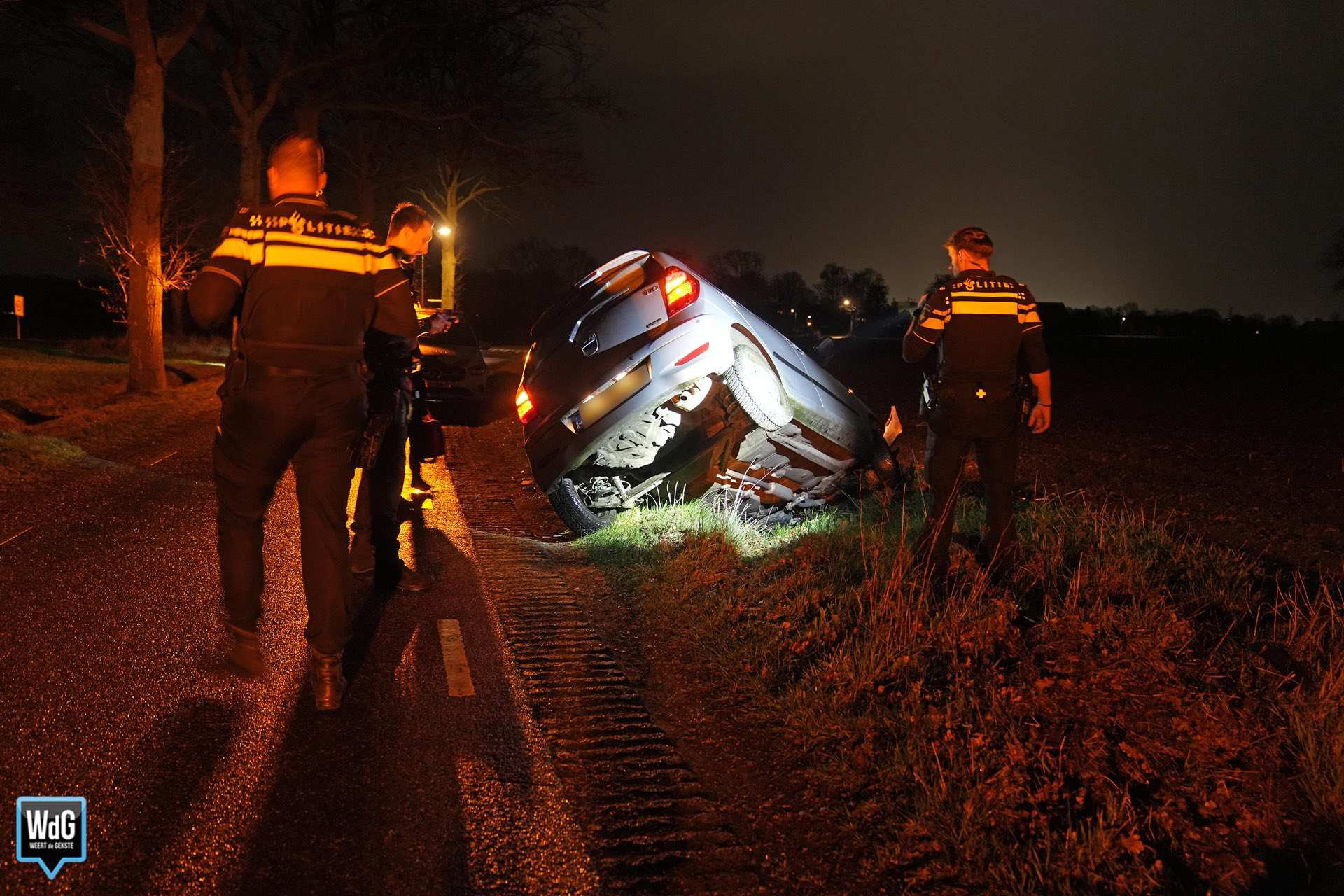 De brandweer voerde nog een nacontrole uit en keek de vrouw voor de zekerheid na. Daarna konden de brandweerlieden terugkeren naar de kazerne. De politie heeft verslag opgemaakt en een berger opgeroepen om de auto af te slepen.