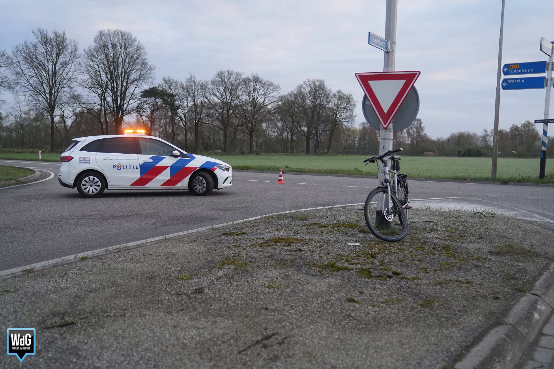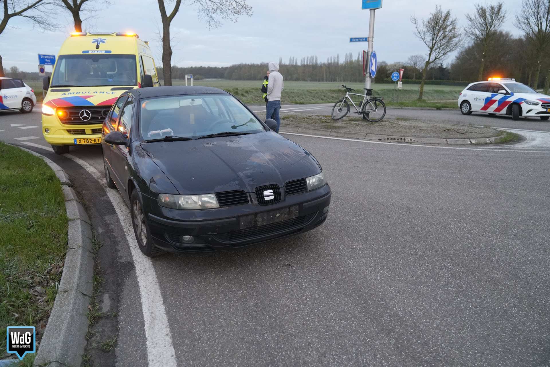 De hulpdiensten werden dinsdag rond 7.20 uur gealarmeerd voor een verkeersongeval op Savelveld in Stramproy. Op de T-splitsing kwamen een auto en een fietser met elkaar in botsing.
