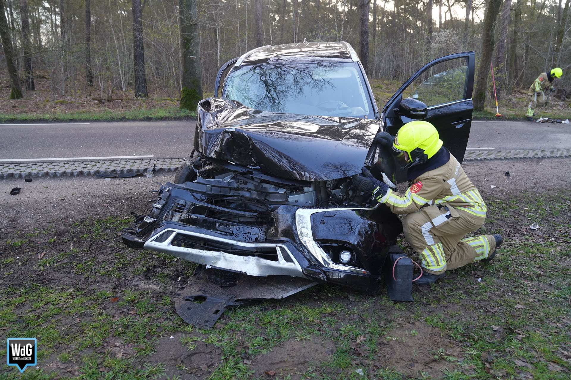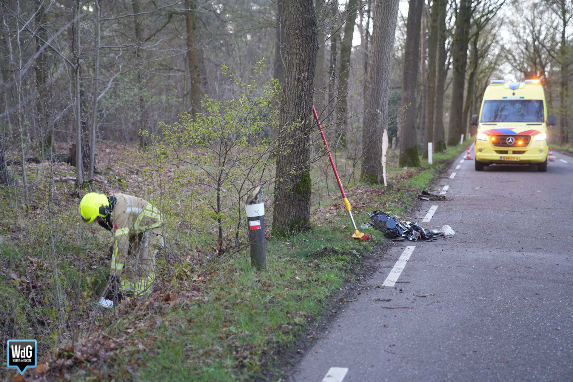 De bestuurder verloor door een nog onbekende oorzaak de macht over het stuur en kwam vervolgens tegen een boom tot stilstand. Omdat er mogelijk sprake was van beknelling, werd ook de brandweer opgeroepen. Enkele voorbijgangers stopten om direct hulp te verlenen.