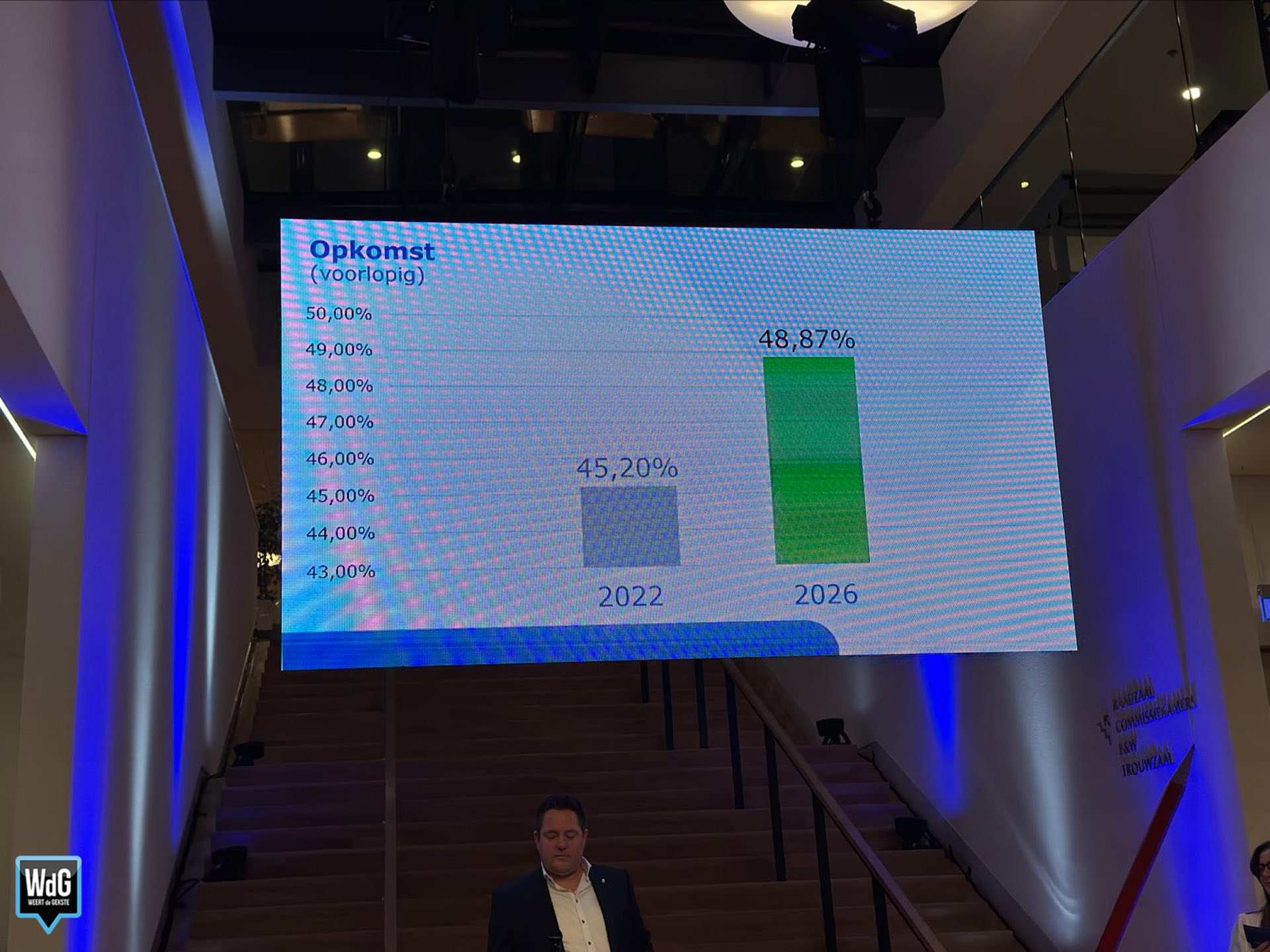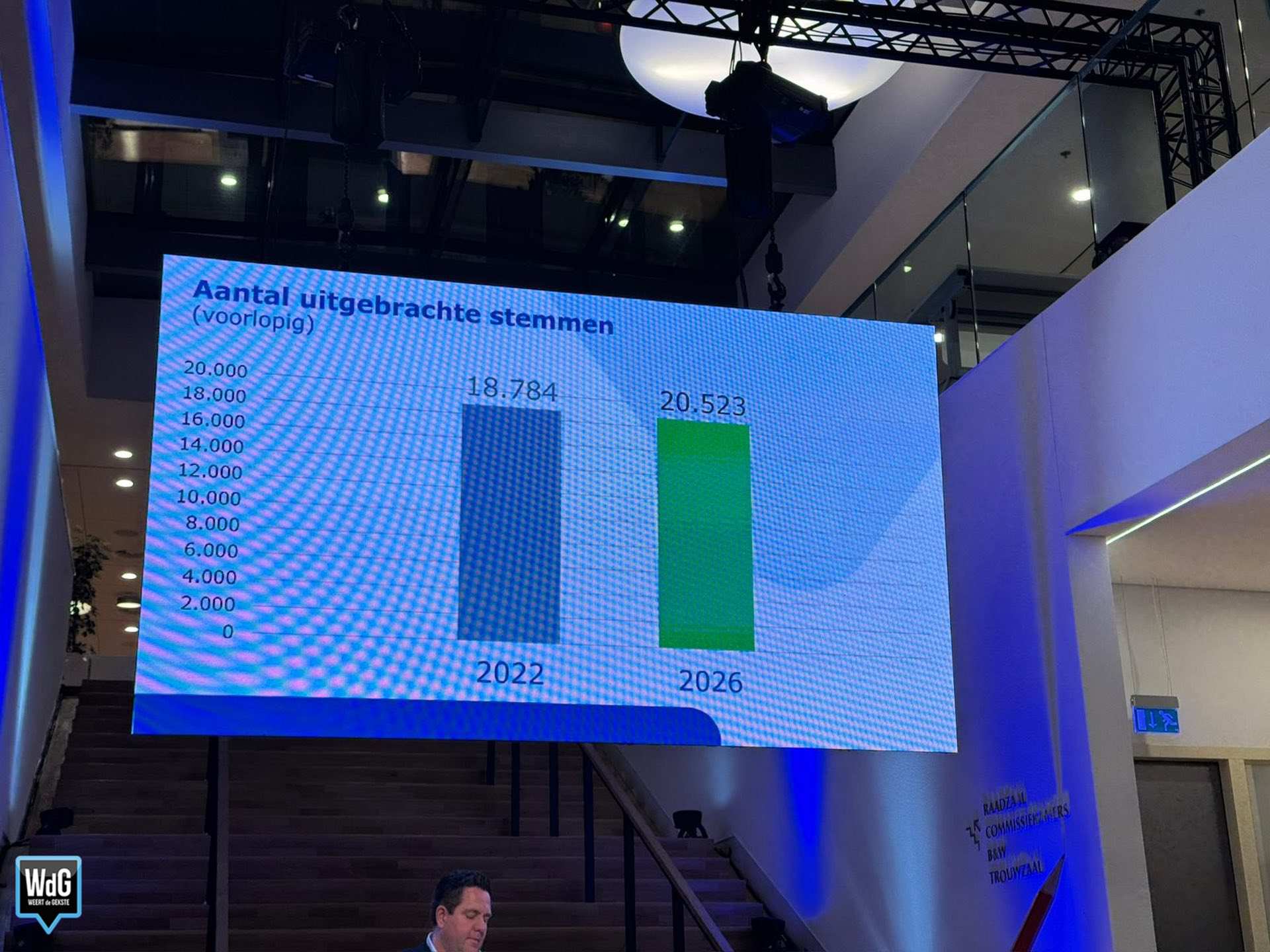Het gaat om een eerste voorlopige telling van één stembureau. Later op de avond moet blijken of dit beeld zich doorzet in de rest van de gemeente.