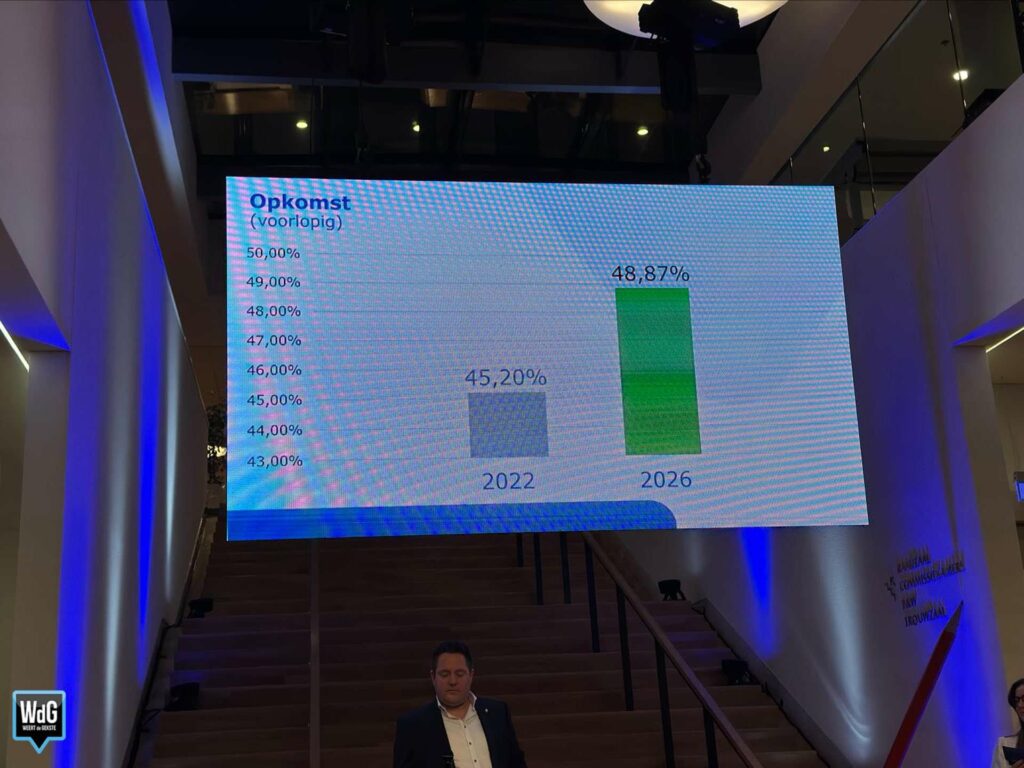 VVD en CDA blijven vooralsnog redelijk stabiel in de middenmoot. GroenLinks/PvdA en D66 lijken het met kleinere aantallen te moeten doen. Hoe de zetels uiteindelijk worden verdeeld, moet later op de avond blijken als alle stemmen zijn geteld.
