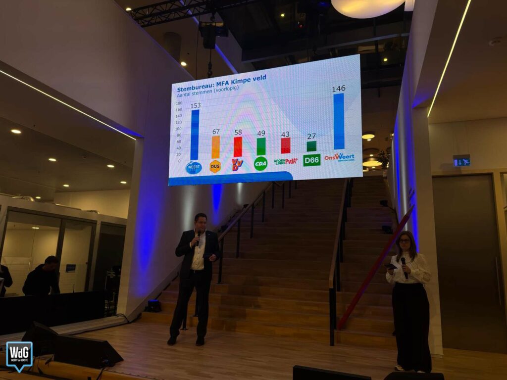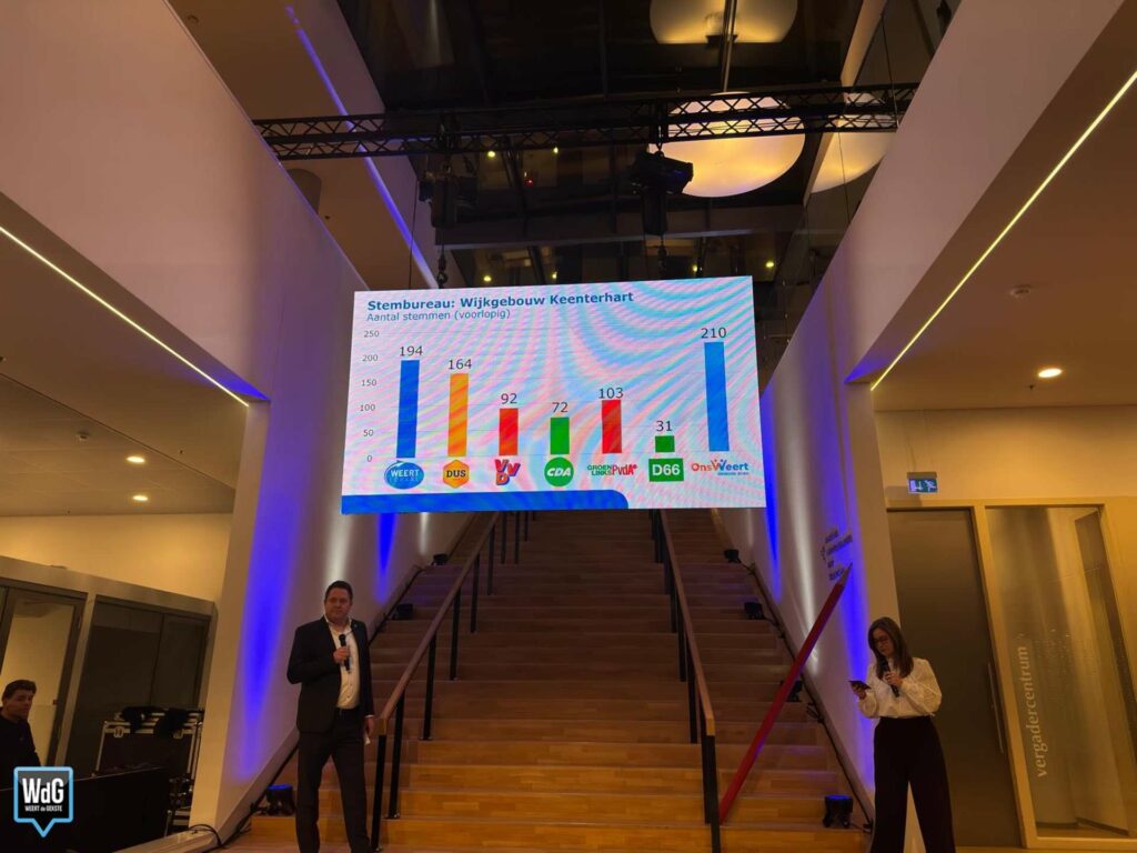 Op basis van de eerste uitslagen lijkt Weert Lokaal opnieuw de grootste partij te worden. Tegelijk valt op dat nieuwkomer Ons Weert op veel plekken sterk scoort en zich nadrukkelijk mengt in de top. DUS Weert doet nog steeds mee, maar lijkt minder dominant dan bij de vorige verkiezingen in 2022.